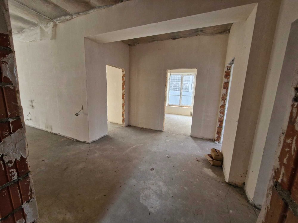 Внутрішнє оздоблення (чистова): розводка електрики по точках, розводка опалення і води по точках, тепла підлога на кухні, в коридорі та с/в, гіпсова штукатурка стін, стяжка підлоги, двоконтурний газовий котел, металевий каркас сходів.