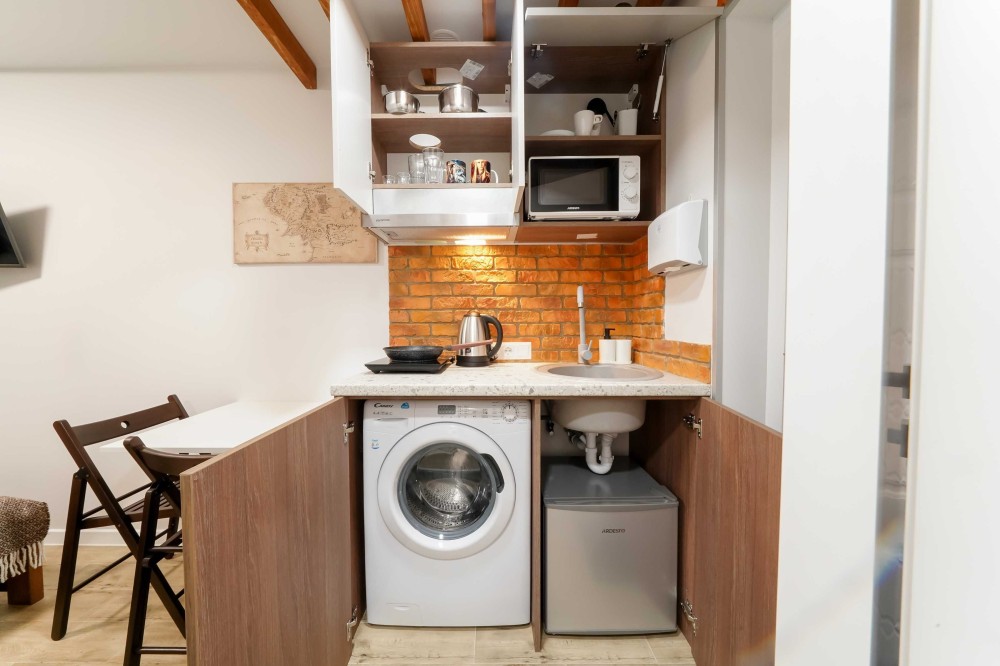 Зручності: WI-FI, ТБ, фен, праска, пральна машина, завжди гаряча вода, свіжі рушники.