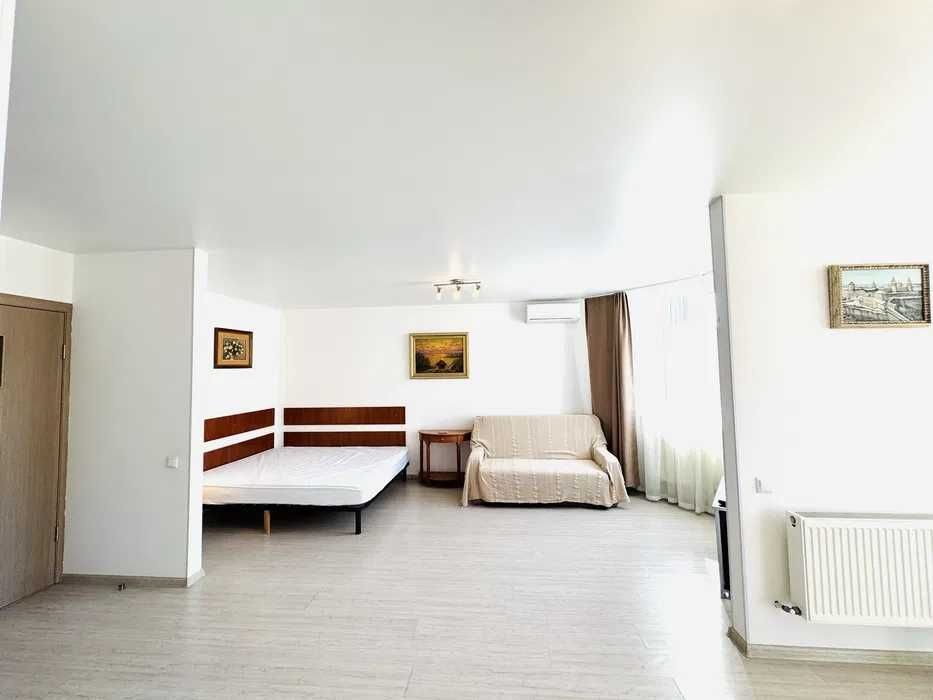 Здається чиста та світла квартира-студія з ремонтом у ЖК «Щасливий» на вул. Яблунева, Софіївська Борщагівка. Квартира простора, повністю укомплектована меблями та всією необхідною технікою для комфортного життя. Є smart TV, Wi-Fi, кондиціонер, плита, мікрохвильова піч, холодильник, варильна поверхня, пральна машина, сушарка, прасувальна дошка, витяжка, а також посуд, подушки та ковдри.