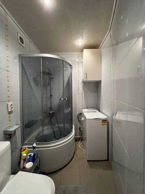 В ванній кімнаті: душова кабіна, пральна машина