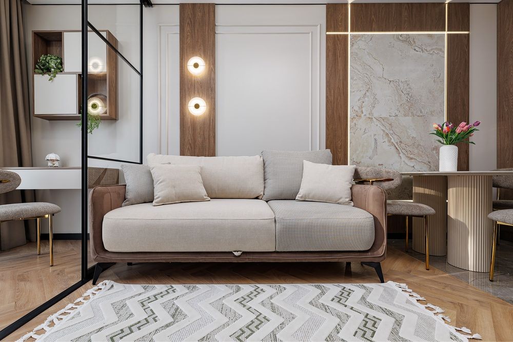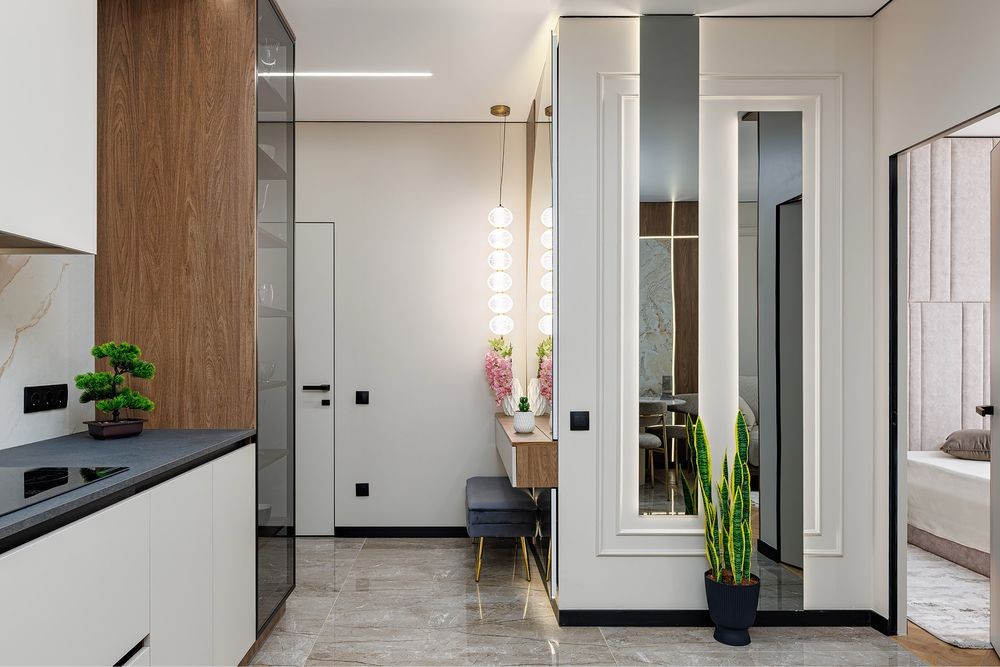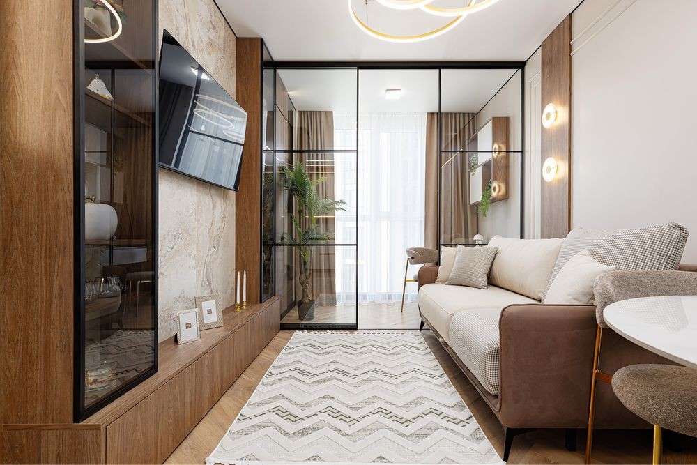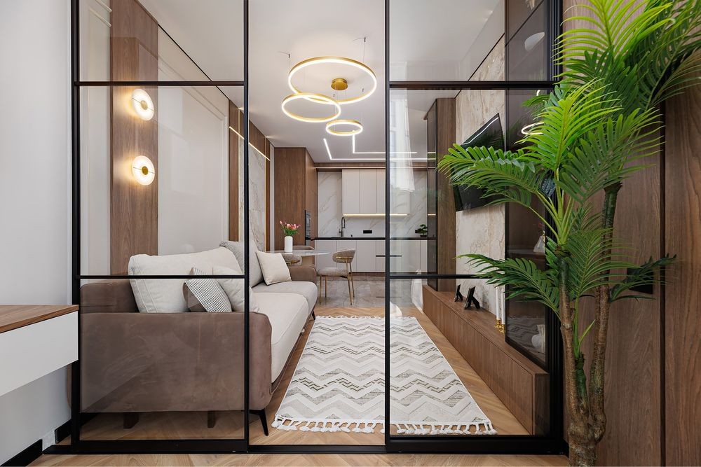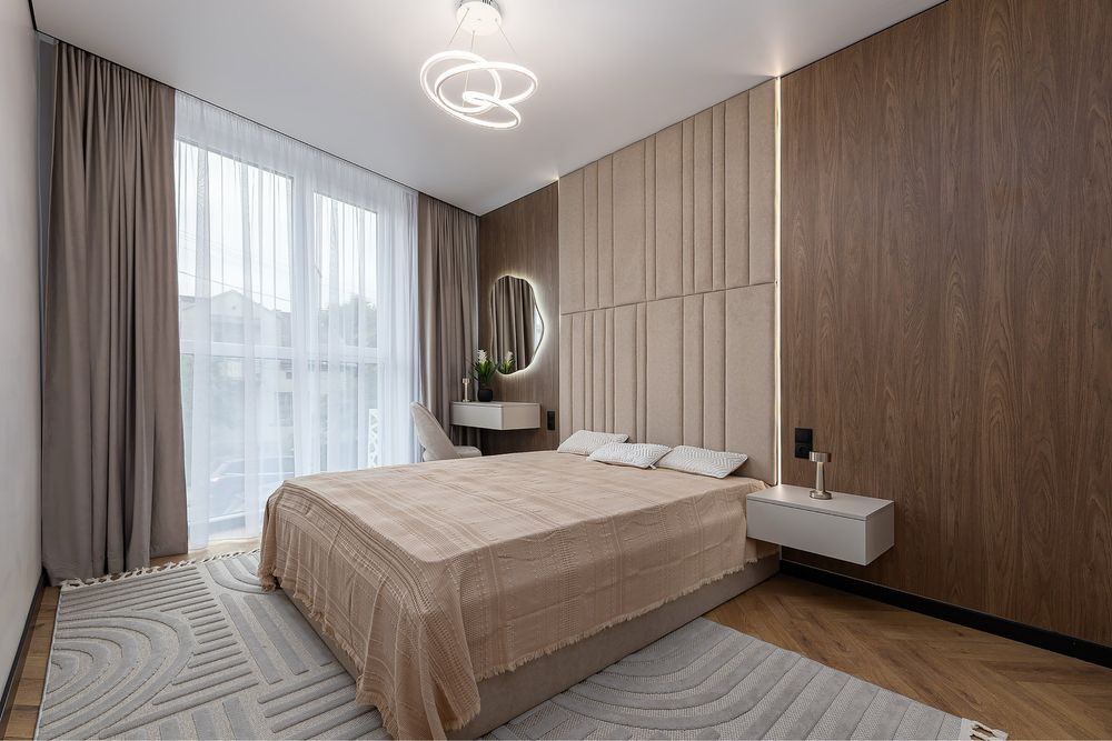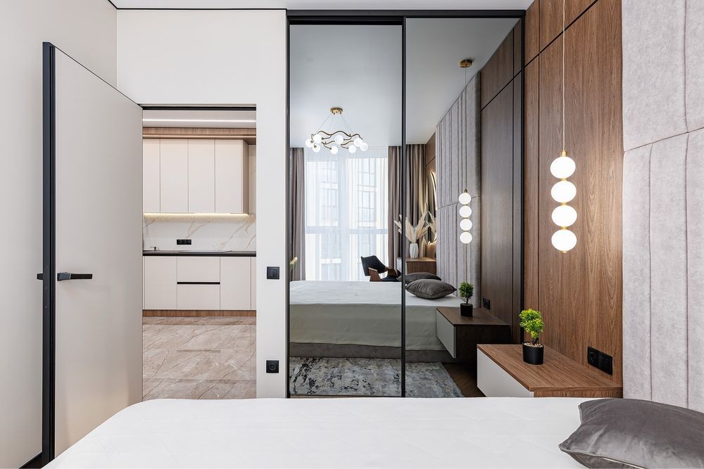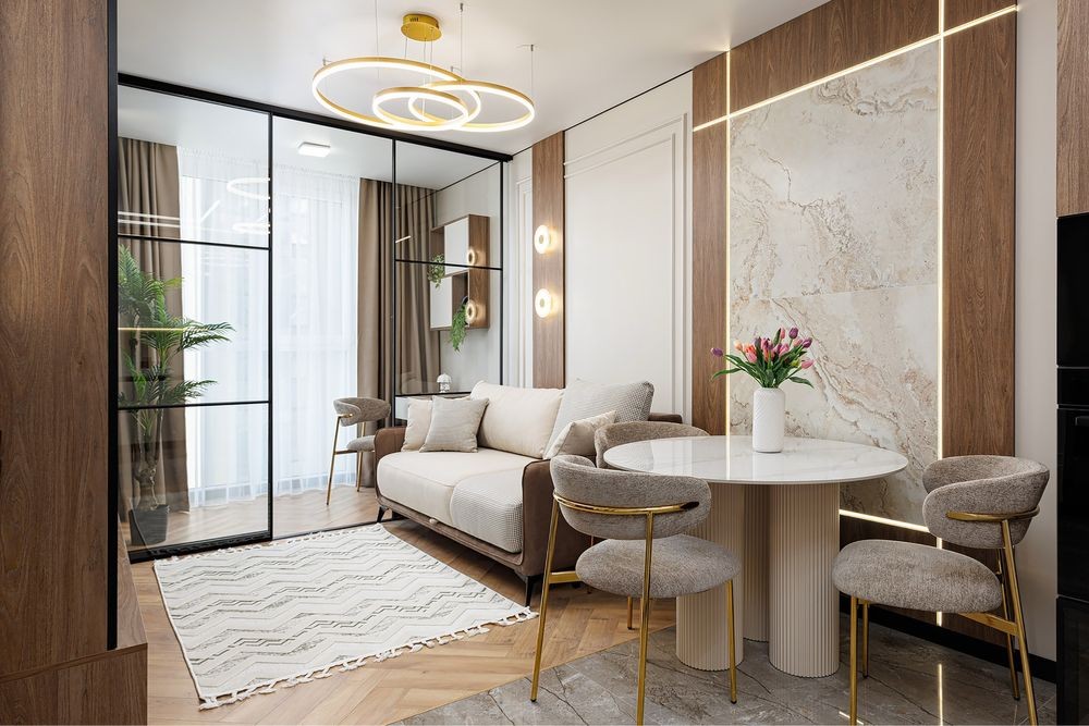 Простора кухня-студіо з відпочинковим диваном,обідній стіл ,затишна лоджія ,спальна кімната з двохспальним ліжком,гардероб,туалетний столик вся необхідна побутова техніка,кондиціонер.На території комплексу є ресторани,магазини,супермаркети,кав’ярні,аптеки.Великі панорамні вікна,в будинку є підземний паркінг(до квартири не належить)