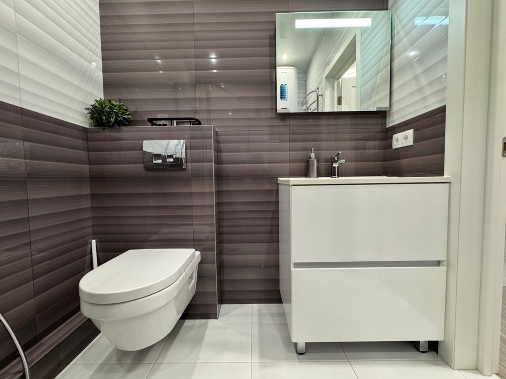 Перша здача. Пропонується в оренду сучасна квартира в новобудові біля м. Житомирська (Берестейський пр-т, 131а). В будинку є генератор (завжди є опалення, вода та працює ліфт). Квартира укомплектована всіма необхідними меблями та технікою. У кімнаті - двоспальне ліжко, розкладний диван, письмовий стіл, кондиціонер, телевізор, велика шафа для одягу. Санвузол суміщений, душова кабінка. Тихий двір, велика парковка. До метро Житомирська - 10 хвилин пішки. Вартість 16000 грн. Умови оренди: оплата за два місяці та послуги рієлтора (50%). комісія: 50%
