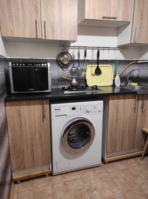 В квартирі є всі необхідні меблі(двоспальне ліжко) та побутова техніка.