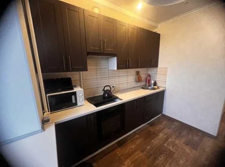 Пропонується в оренду охайна квартира площею 34 м² з кухнею, збільшеною за рахунок балкону. Зручний варіант для комфортного проживання.