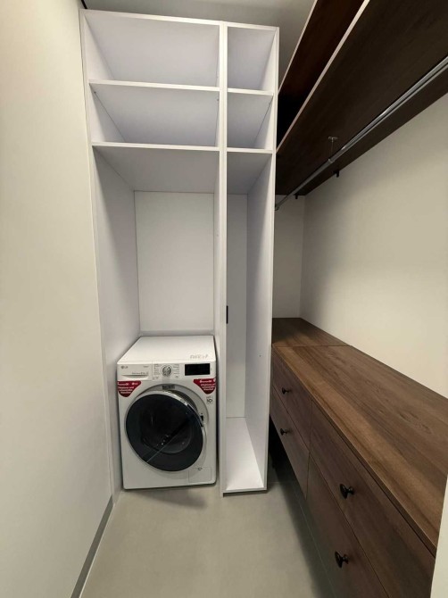 Є вмісткий гардероб (в якому встановлена пральна машина та сушильна).