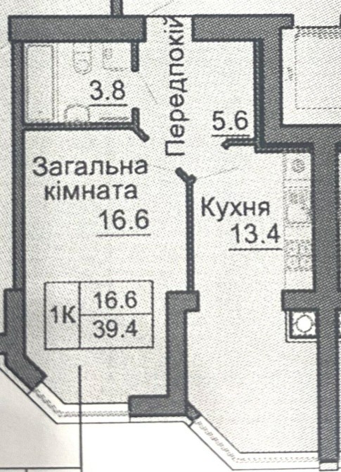 • Общая площадь 39 м2