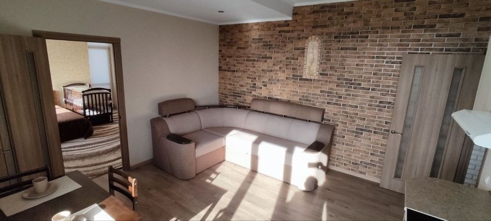 Велика кухня-вітальня 22кв та окрема спальня. Є балкон.
