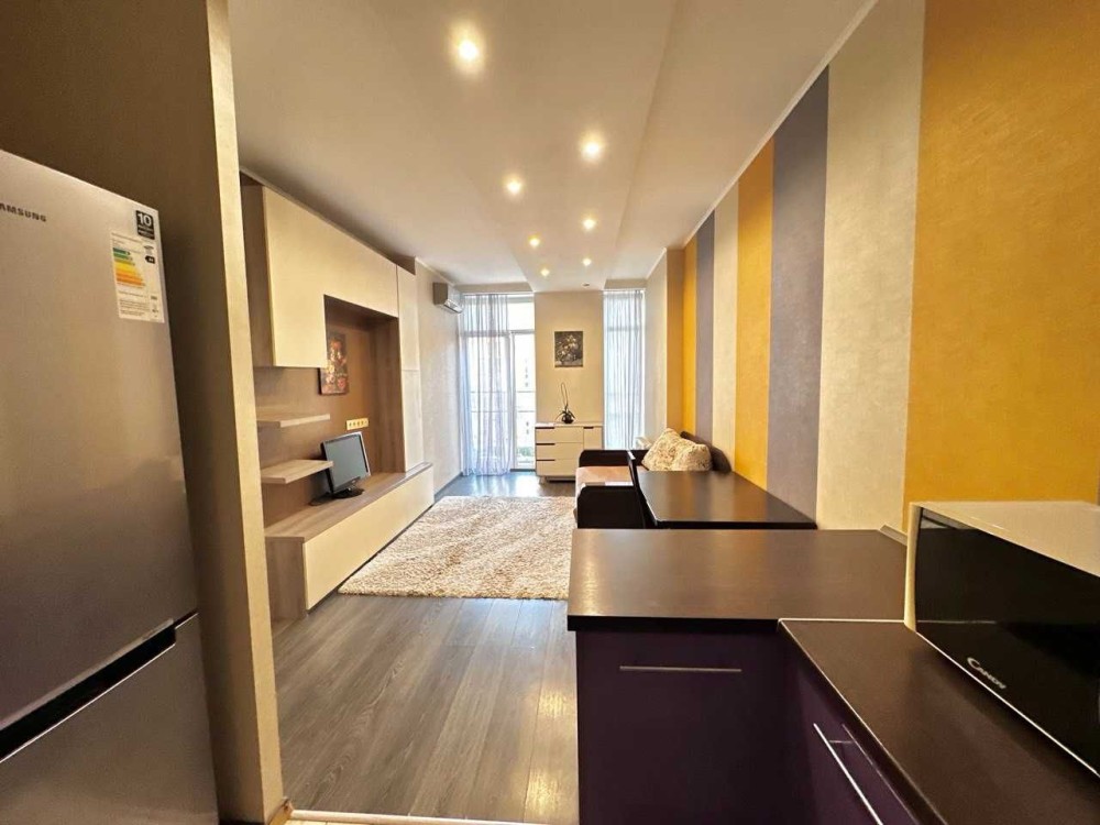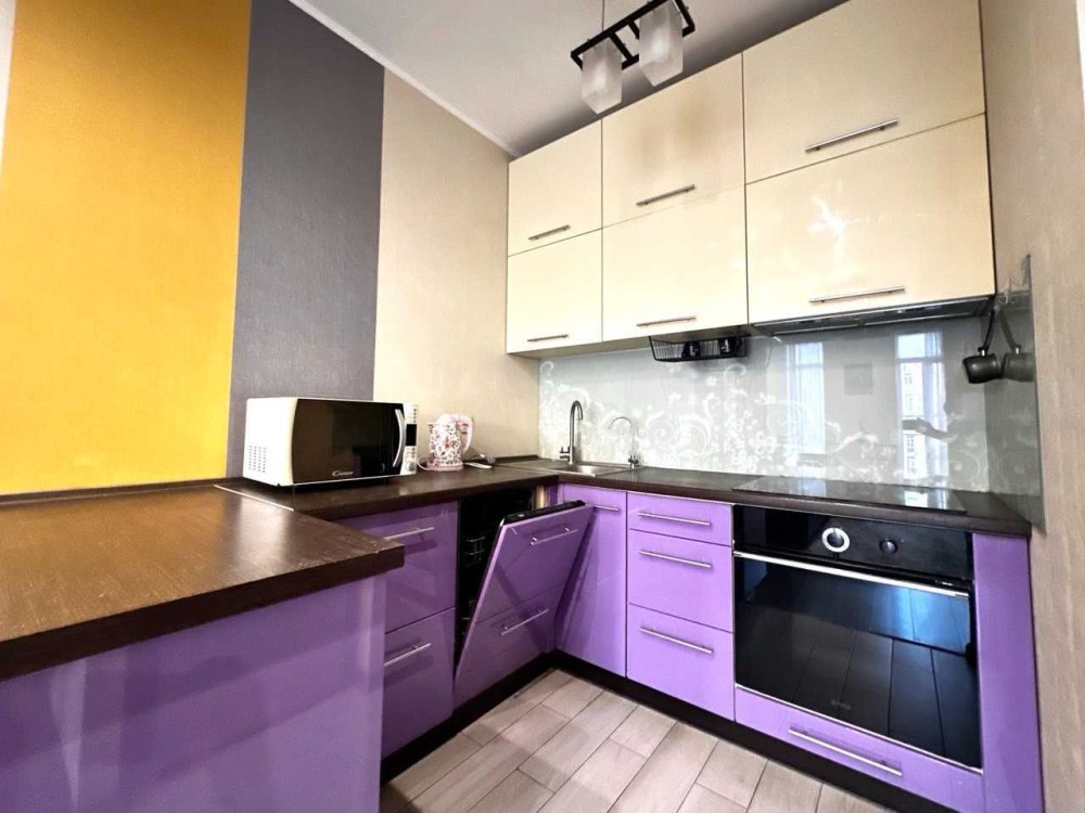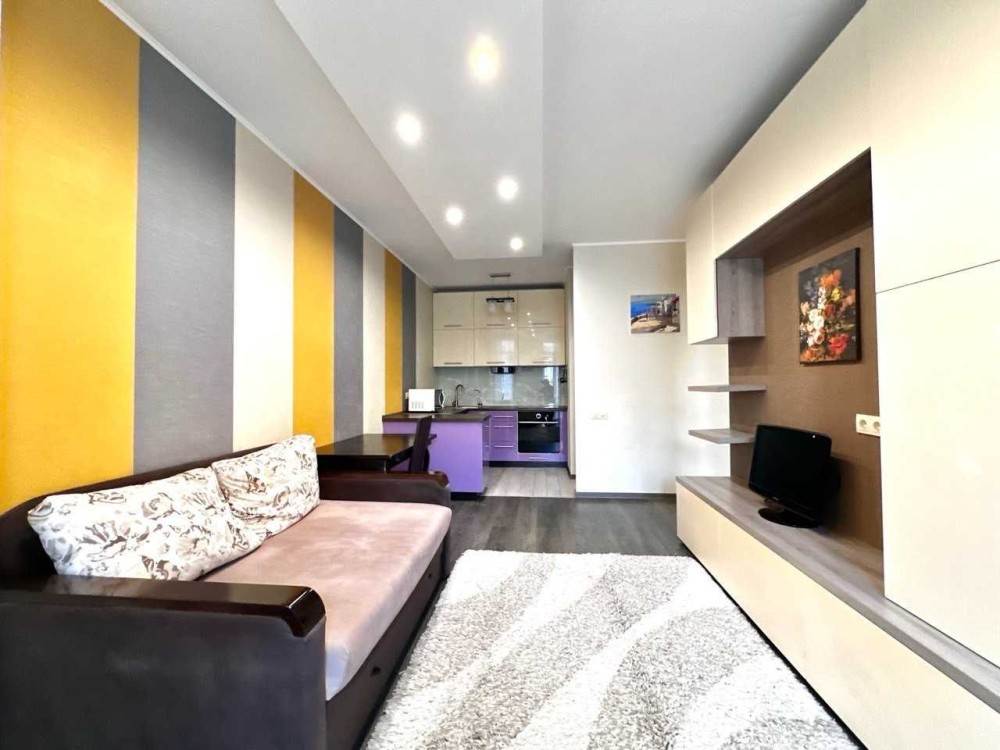 Світла, затишна квартира, зонована під відпочинкову і робочу кухонну зону. Укомплектована всією необхідною технікою і меблями.