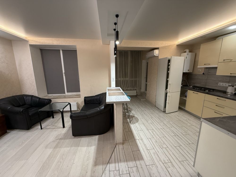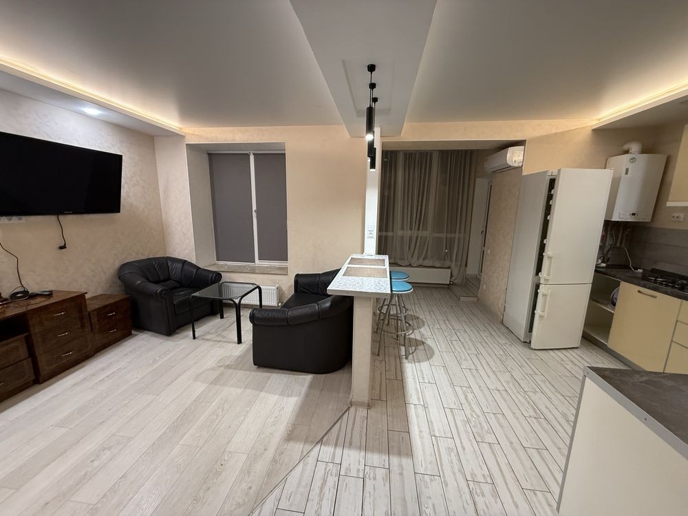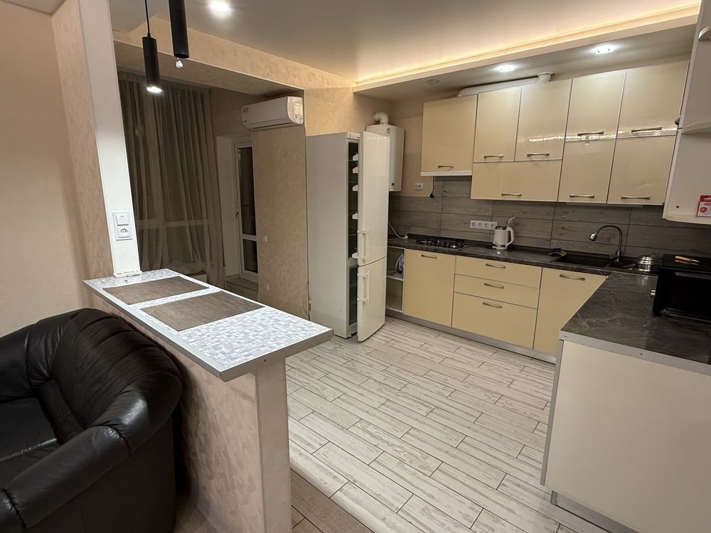 Функціональне планування та приємна атмосфера для комфортного життя. Кухня обладнана всією необхідною технікою: варильна поверхня, холодильник, мікрохвильова піч, кондиціонер, пральна машина. У квартирі все продумано для щоденного комфорту. У квартирі є бойлер — при відключенні світла в ньому завжди буде гаряча вода.