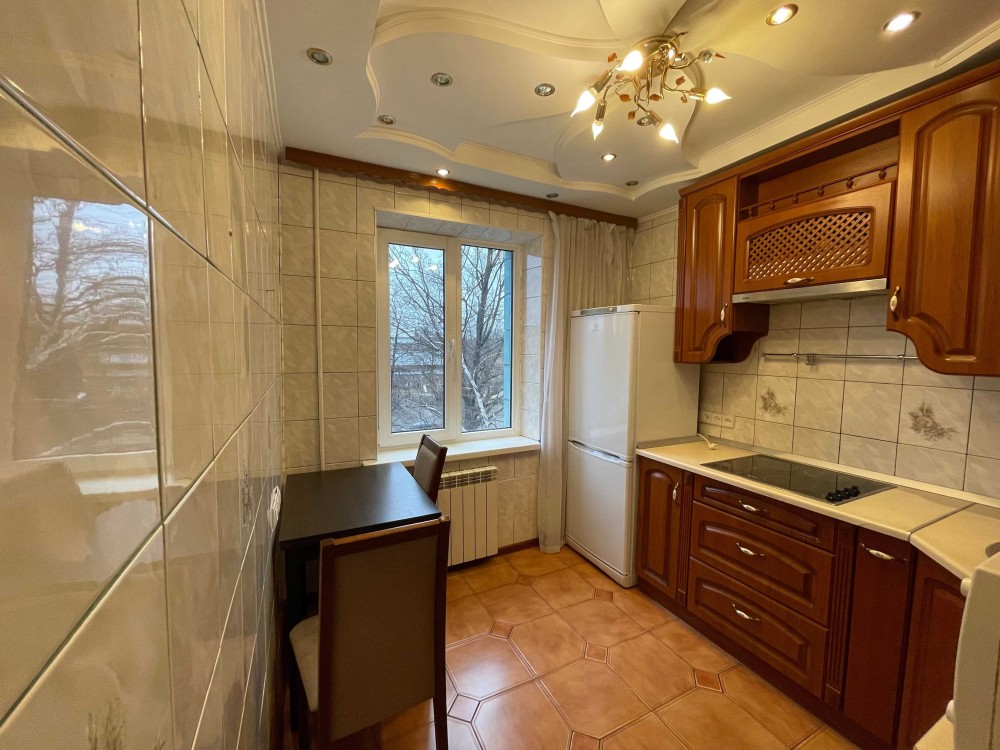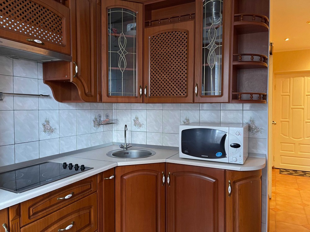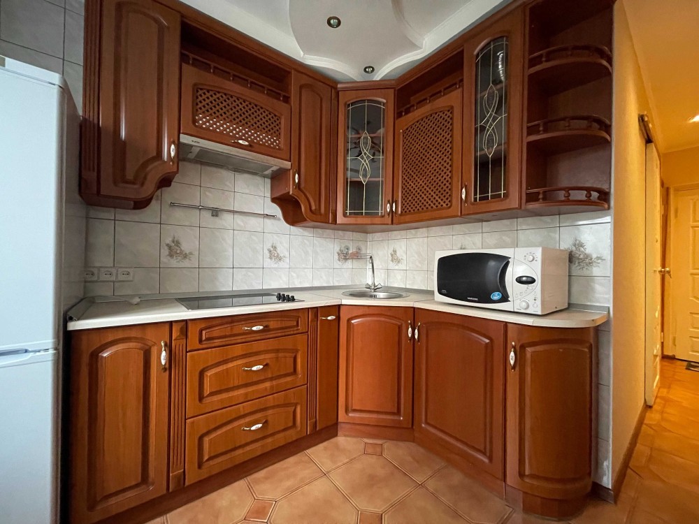 Кухня обладнана варочною поверхнею, мікрохвильовою пічю та холодильником. В сан.вузлі – бойлер та пральна машинка. Також є засклений балкон та кладовка.
