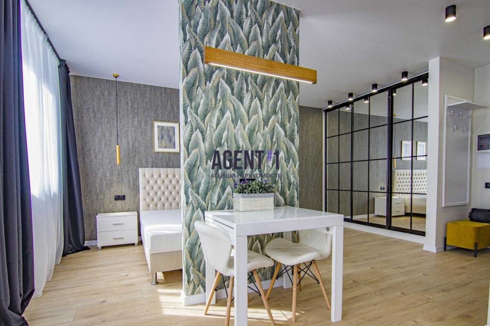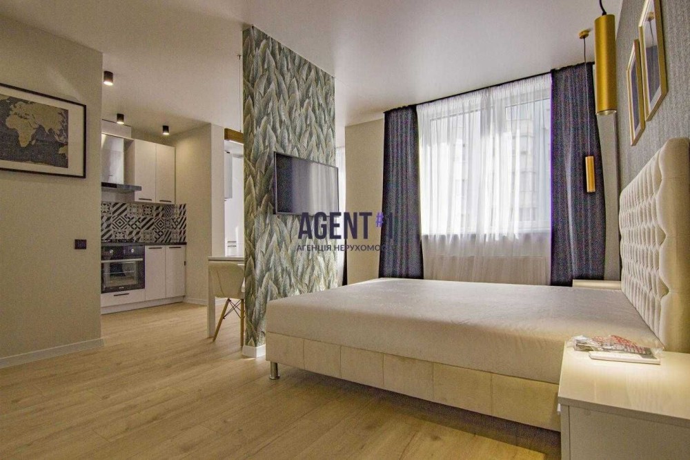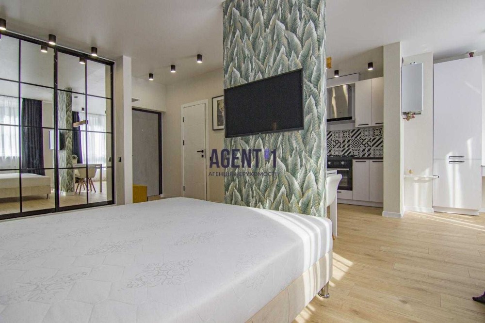 Зроблений сучасний ремонт з високоякісних матеріалів. Оснащена новими меблями і технікою, є все для комфортного проживання. В кімнаті встановлено двоспальне ліжко, шафа, телевізор. Кухня: встановлена вбудована кухня, укомплектована побутовою технікою: варильна поверхня, духова шафа, витяжка, холодильник, обідній стіл зі стільцями, є робочий стіл. В ванній кімнаті пральна машинка автомат,душова, умивальник з тумбою, дзеркало, сушка для рушників . Без тварин. Поруч ЖК Львівський, магазини, зупинка 903 маршрутки.