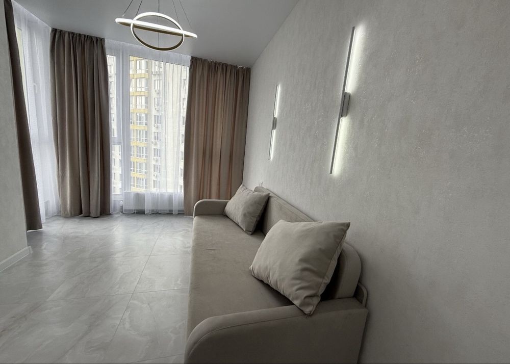 Перша здача. Пропонується в оренду сучасна квартира в новобудові біля м. Житомирська (Берестейський пр-т, 131а). В будинку є генератор (завжди є опалення, вода та працює ліфт). Квартира укомплектована всіма необхідними меблями та технікою. У кімнаті - двоспальне ліжко, розкладний диван, письмовий стіл, кондиціонер, телевізор, велика шафа для одягу. Санвузол суміщений, душова кабінка. Тихий двір, велика парковка. До метро Житомирська - 10 хвилин пішки. Вартість 16000 грн. Умови оренди: оплата за два місяці та послуги рієлтора (50%). комісія: 50%