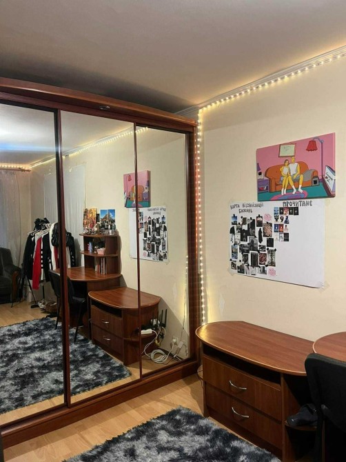 Квартира у гарному стані, кімната світла та суха, не кутова. Для комфортного проживання є плазмовий телевізор, холодильник, пральна машина, мікрохвильова піч, а також зручний стіл для комп’ютера з кріслом.