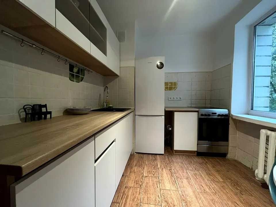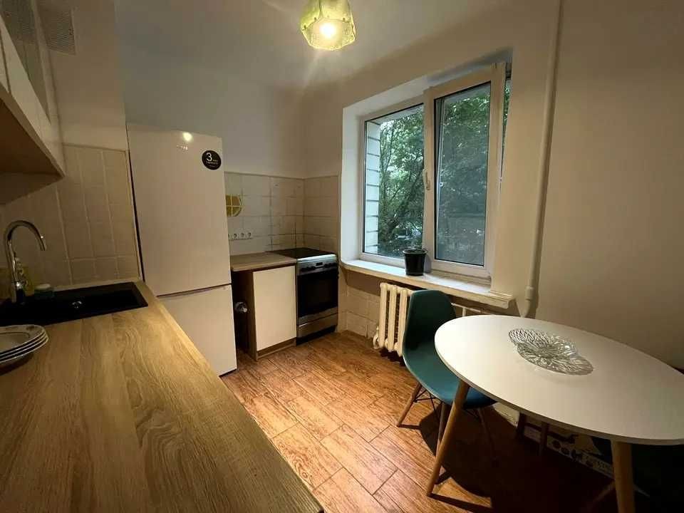 2/12 цегляного будинку . 10 хвилин від метро та палацу Україна. Загальна 38 кв.м. Велика лоджія для відпочинку утоплена в зелені дерев. Нові меблі та побутова техніка. Закритий під'їзд. Довгостроково.