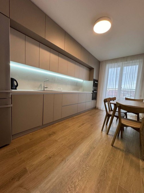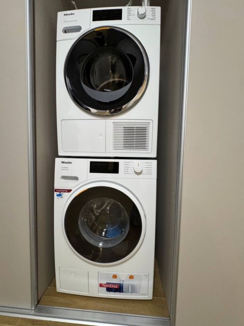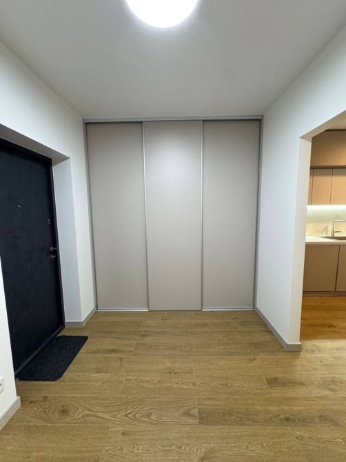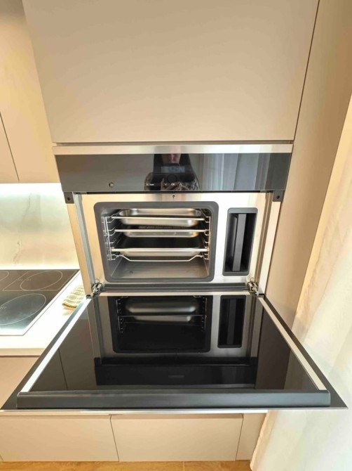 Коридор з вмонтованою шафою-купе. Суміжний санвузол з душовою, кераміка фірми Villeroy and Boch, сантехніка Grohe і Hansgrohe. Пральна машина і сушарка для особливо делікатних речей Miele. Кухня з виходом на балкон. Вікна виходять на особняки (на "Південний"). Облаштована дорогою технікою Miele: холодильник, парова шафа, духовка, індукційна плита; посудомийка Bosch, кондиціонер. Фільтри на воду.