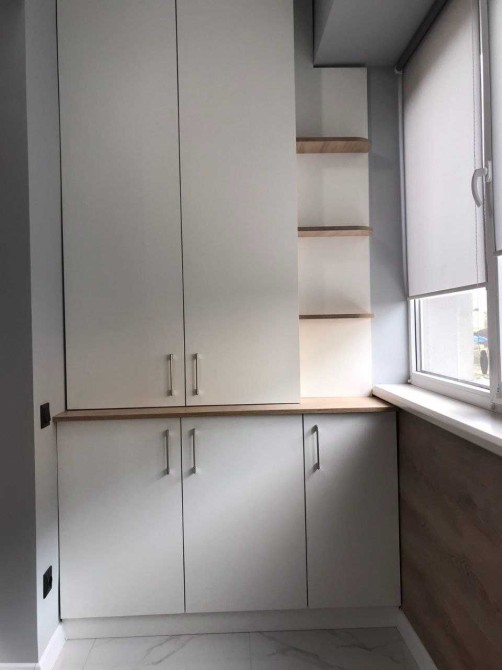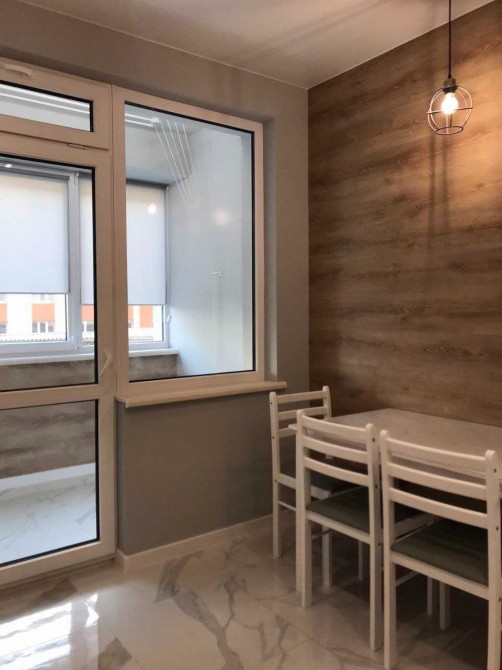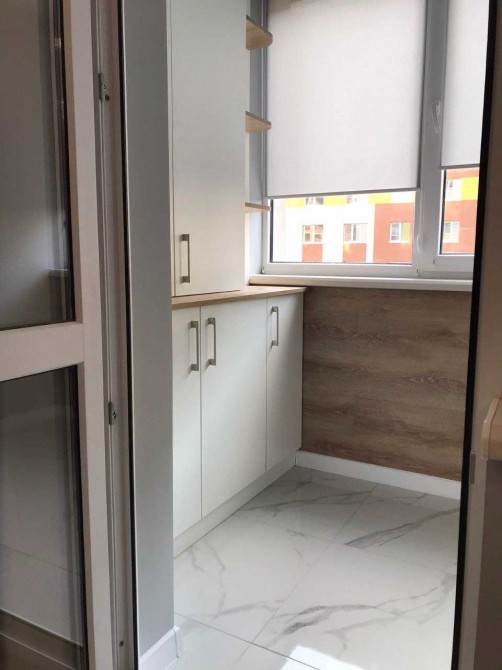 Вихід на засклений балкон з кухні, де можна облаштувати робоче місце.