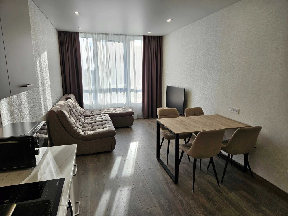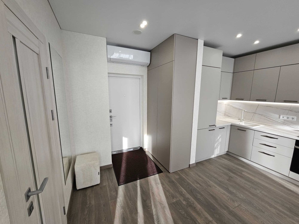 Простора кухня-вітальня, окрема спальня з великим ліжком. Вікна у двір. Є вся необхідна техніка: посудомийка, пральна машина+сушка 2в1, бойлер, вбудований холодильник, мікрохвильовка, духова шафа, телевізор-smart 55", кондиціонер. Інтернет оптоволокно - працює при відключенні. Тепла підлога та велика душова кабіна у санвузлі, фільтр осмос для питної води. Ліфт і водопостачання працюють під час відключень.