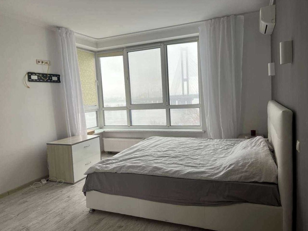 Квартира з якісним сучасним ремонтом в ЖК на березі Дніпра. В квартирі окрема спальня,кухня-вітальня,суміжний санвузол. Є всі необхідні меблі та побутова техніка. Територія ЖК охороняється,є місця для паркування. До метро Славутич 3хв пішки.