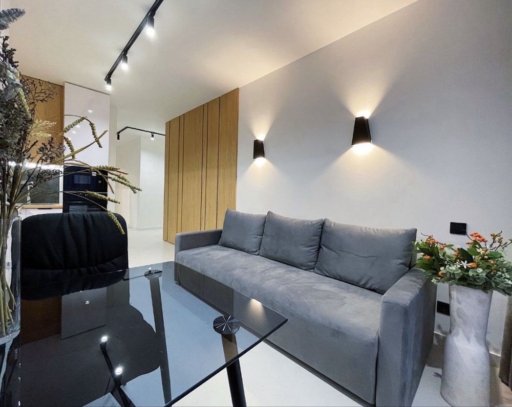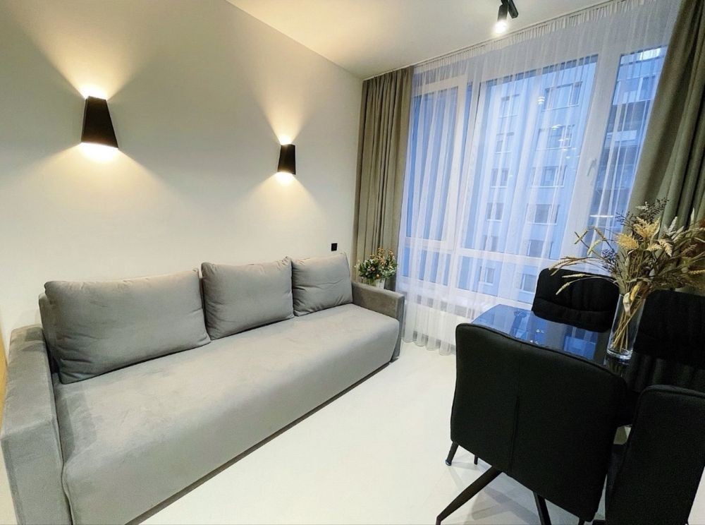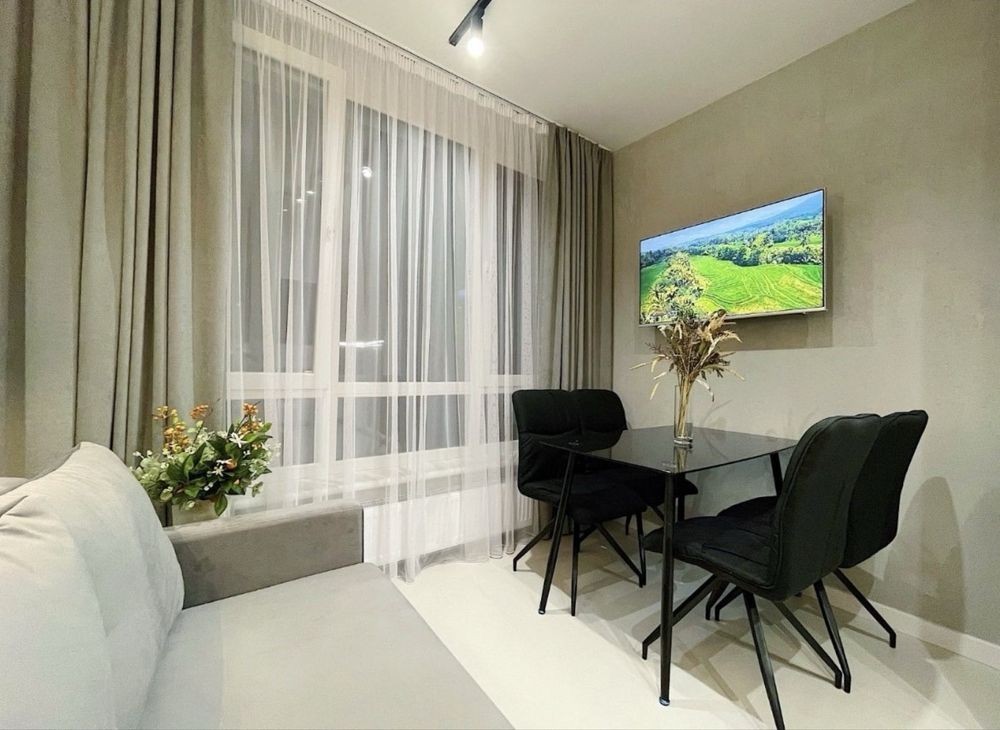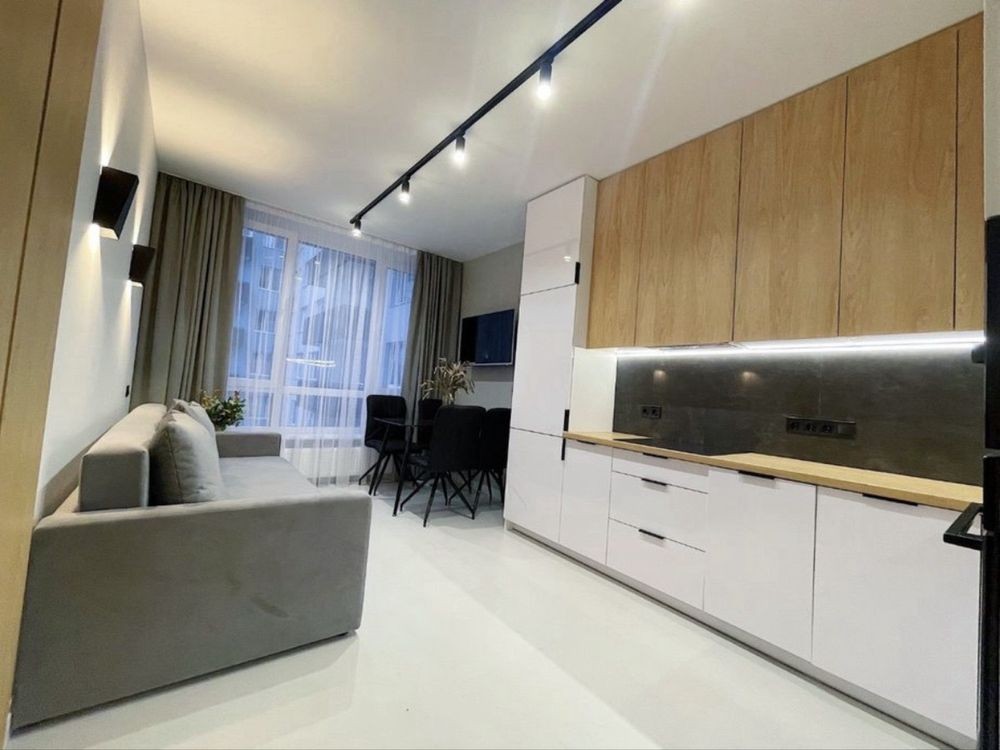 Оренда 1 кімнатної квартиртири вул. Під Голоском. Дизайнерський ремонт, 47м2, 5 поверх/7, перша здача. Кухня-студіо та ізольована спальня. Гардеробна. Тераса. Посудомийка, тепла підлога, кондиціонер. Без тварин. Вільна з 14 березня. Ціна 450$