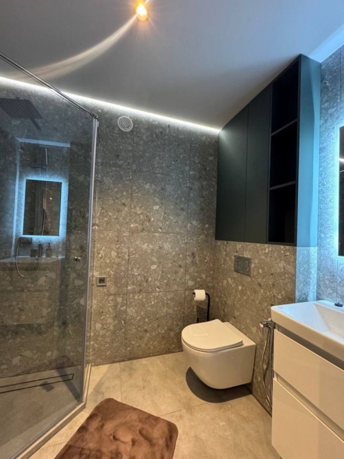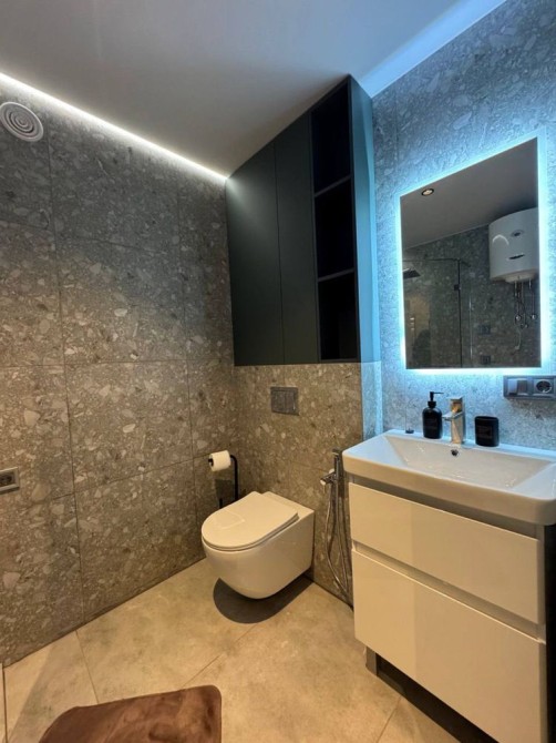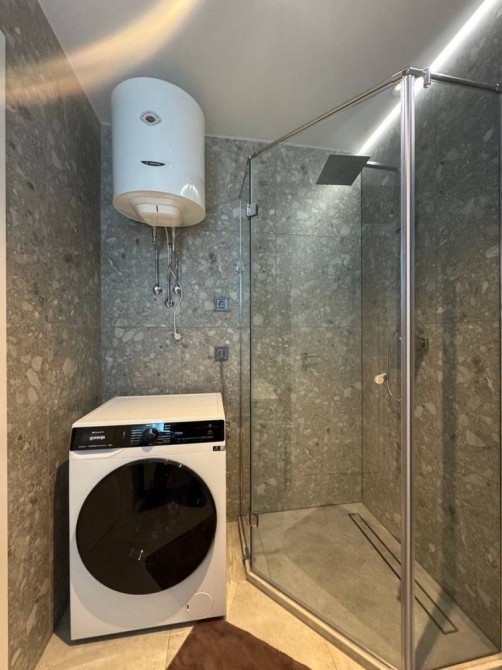 Квартира повністю укомплектована меблями та технікою: прально-сушильна машина, посудомийка, холодильник, бойлер, телевізор. Заведений інтернет, встановлено стабілізатор напруги. Просторий санвузол з душовою кабіною.