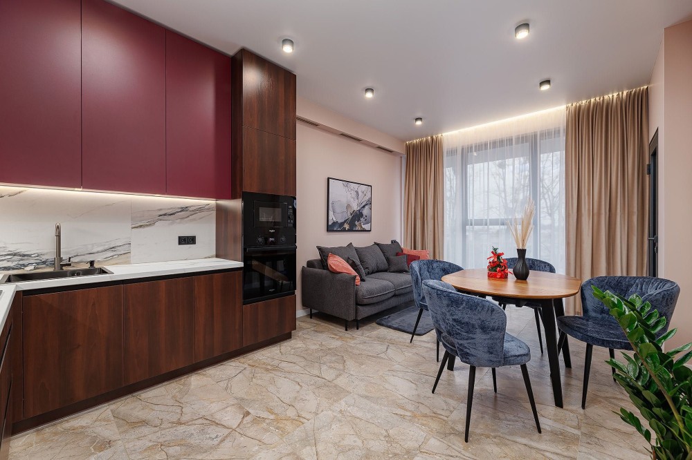 Квартира з сучасним ремонтом, повністю укомплектована меблями та побутовою технікою.