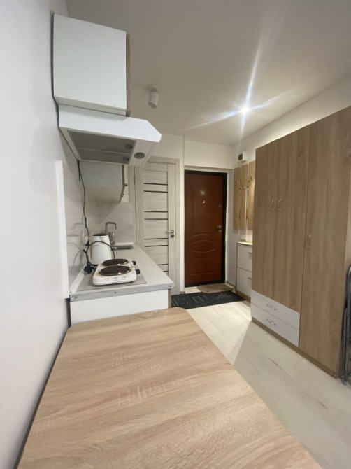 Вул. Шепелєва 10А, 1/5 поверхового будинку, с/в сумісний, душ, студія 20 кв.м. Студія укомплектована всіма необхідними меблями (диван, шафа, стіл, стільці) та побутовою технікою (пральна машинка, холодильник, бойлер, чайник, плитка електрична, кухонний гарнітур), лічильники на холодну воду та світло. Будинок розташований поряд з магазинами, до м. Берестейська та Шулявська 15 хв на транспорті. Швидкісний трамвай 10 хв пішки. Зупинки маршруток (201, 433, 427, 566), 27 трол., 14, 15, 18 трамвай. Розвинена інфраструктура.