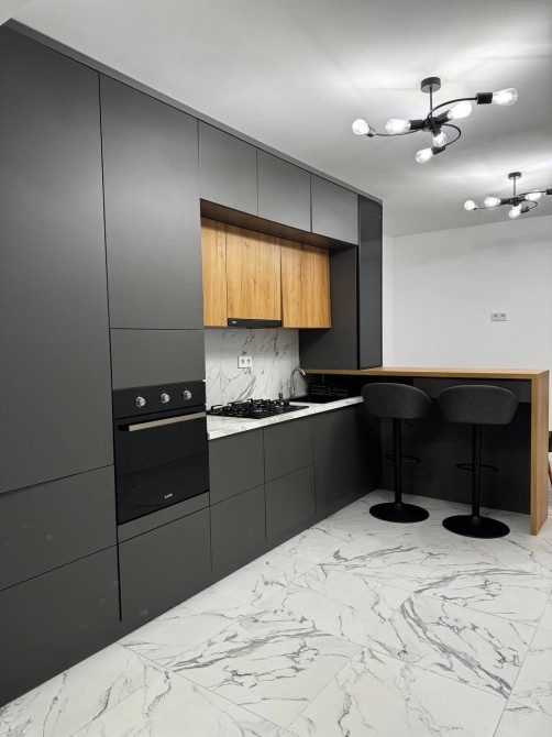 - вся необхідна комплектація по меблях та техніці: газова варильна поверхня, духова шафа, витяжка, холодильник, пральна машина