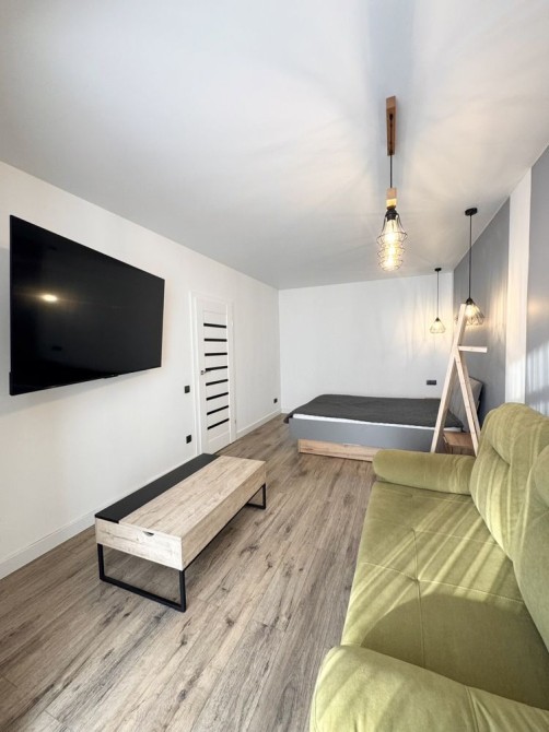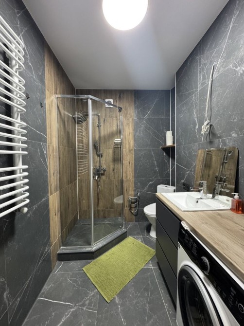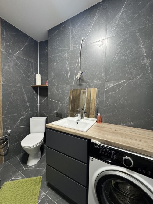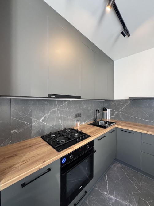 Помешкання укомплектоване всім необхідним, з техніки: пральна машина, газова поверхня, духова шафа, витяжка, холодильник, посудомийна машина, величезний телевізор та кондиціонер.