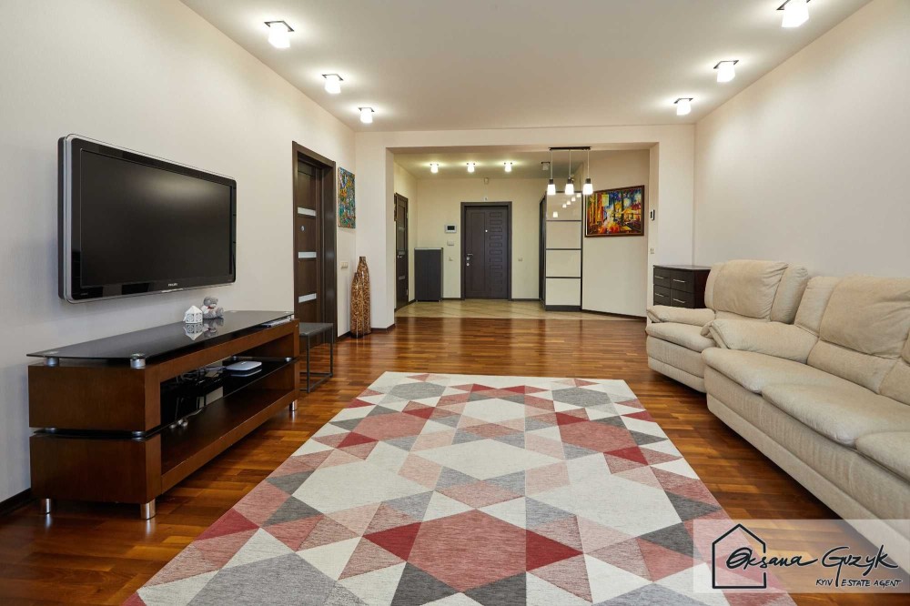 Площа квартири 112 кв.м., яка має 2 (дві) спальні одна з яких із балконом, окрему вітальню, окрему кухню та два санвузли (один з ванною, інший з душовою).