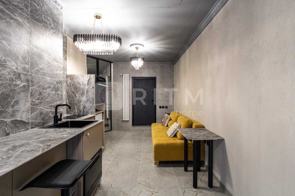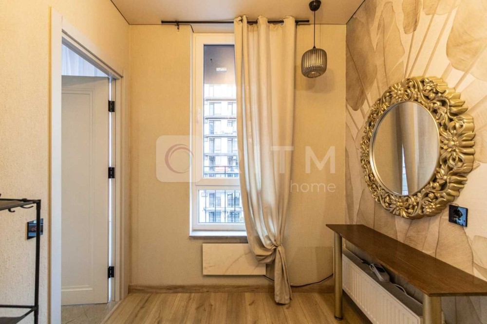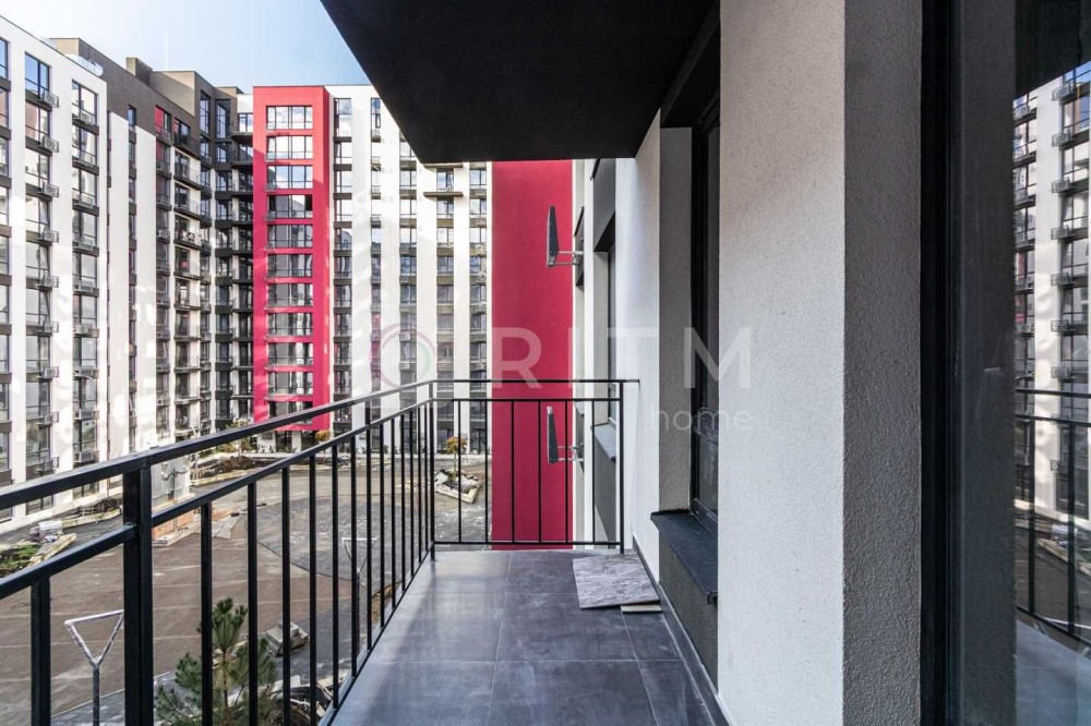 Пропонується в оренду простора та світла однокімнатна квартира площею 35 м² (загальна площа разом із терасою — 42 м²), розташована на 4-му поверсі сучасного житлового комплексу «Манхеттен».