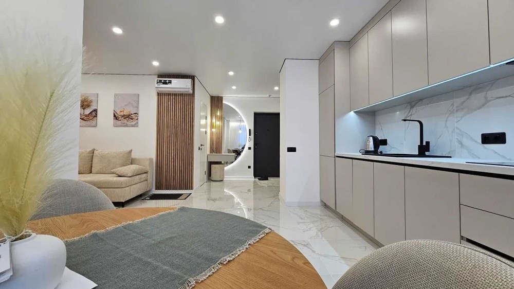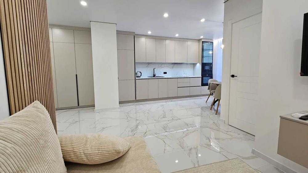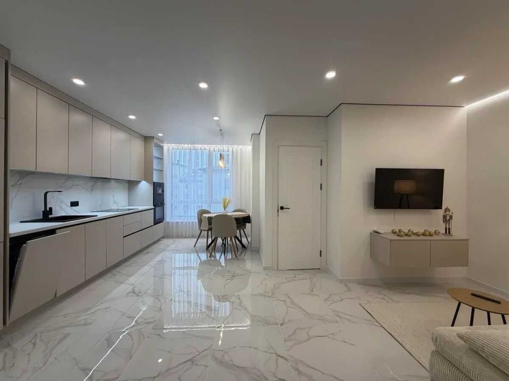 В квартирі окрема спальня, простора кухня-вітальня, відпочинкова тв-зона.