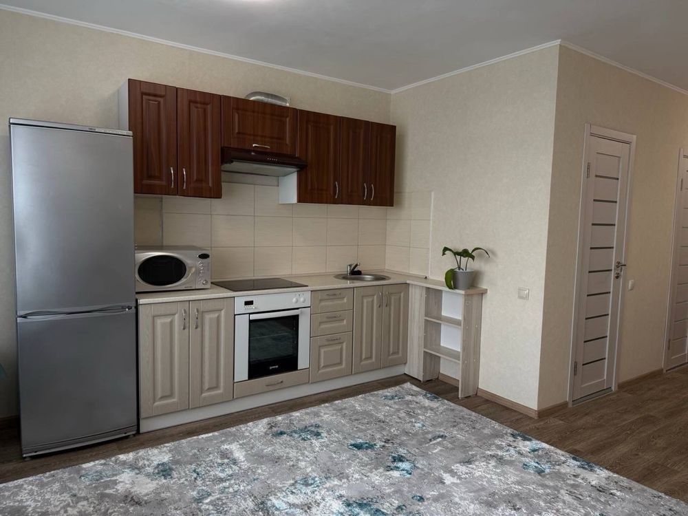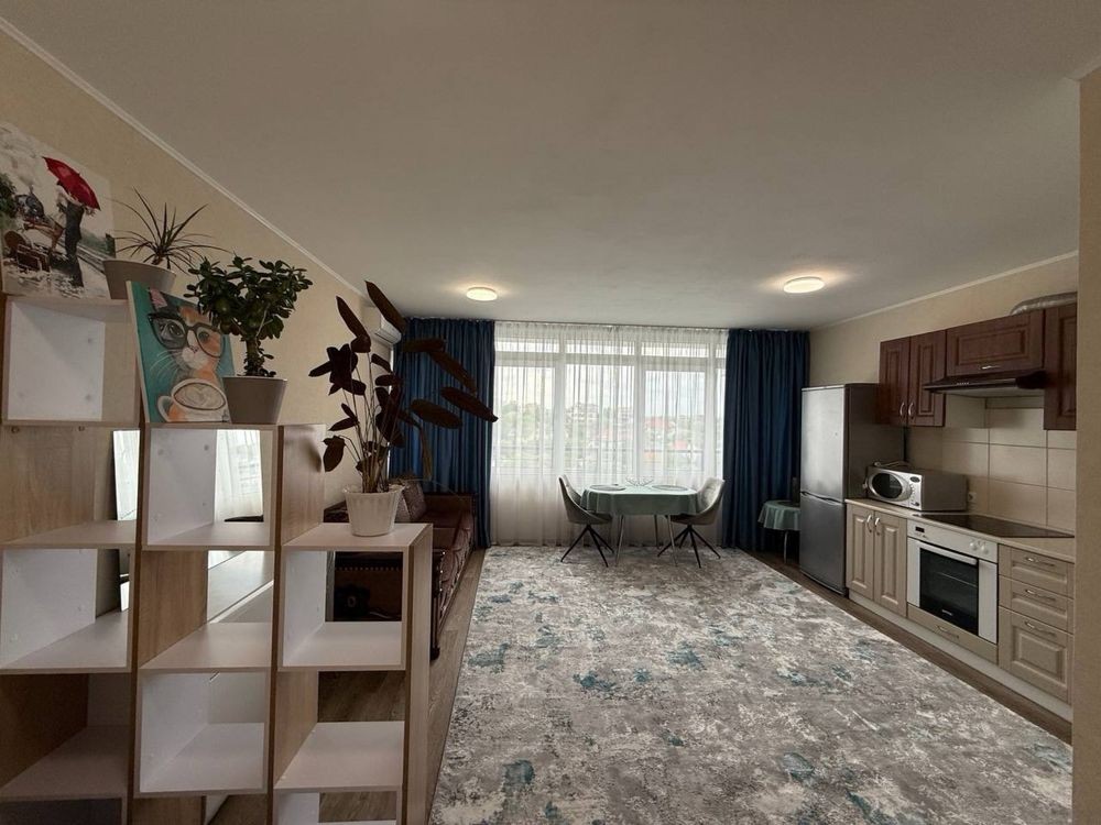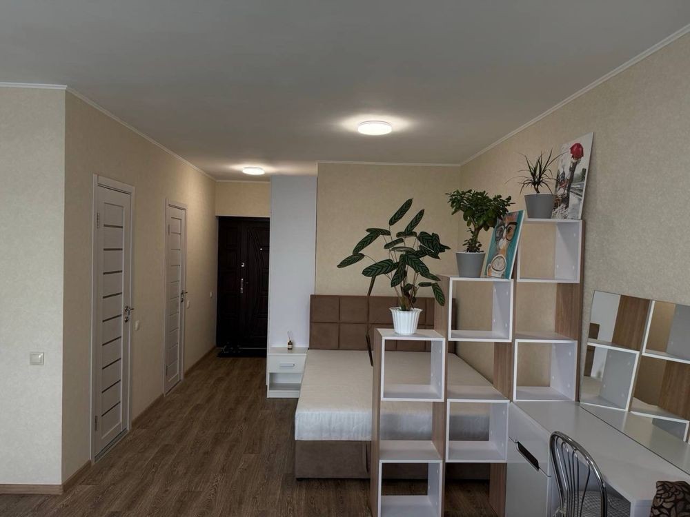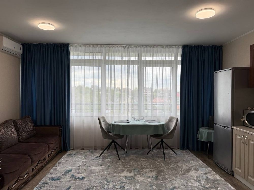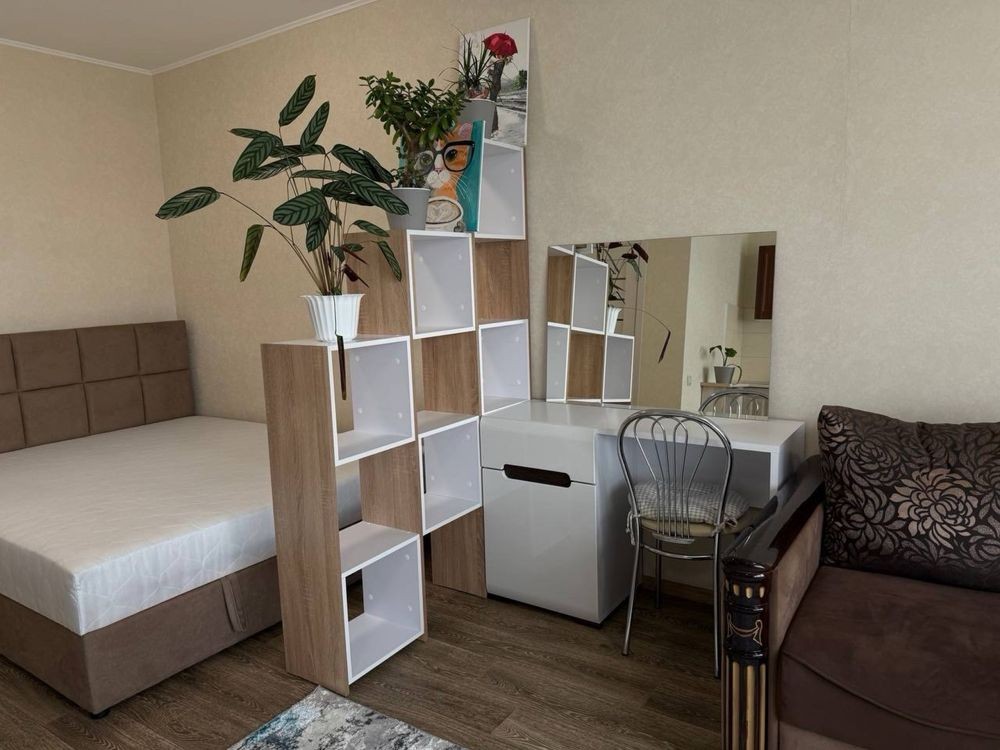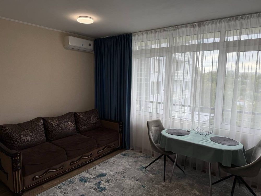 Здається в оренду 1-кімнатна квартира студія (35,3м2) в Голосіївському районі (вул.Гетьманська,1а). В квартирі зроблений якісний ремонт, наявні всі необхідні меблі (двоспальне ліжко та розкладний диван, гардероб та шафа купе,) та побутова техніка (холодильник, пральна машина, бойлер, мікрохвильова піч, варильна поверхня та духова шафа,кондиціонер). Лічильники на світло (двозонний), воду та тепло.