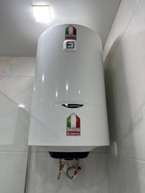 У ванній кімнаті, встановлена душова кабіна та бойлер для гарячої води.