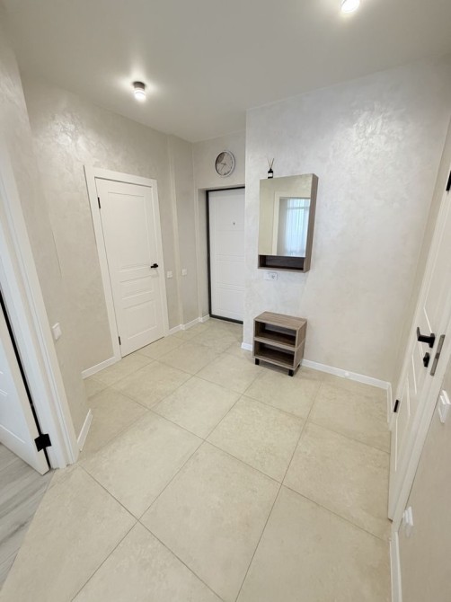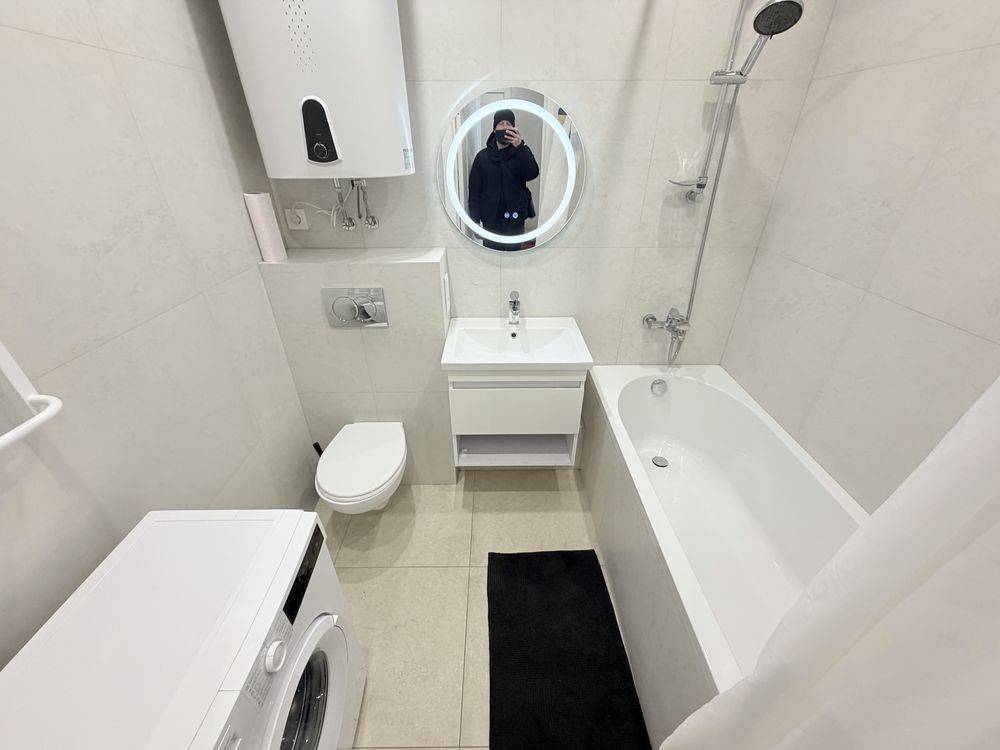 Квартира з якісним та новим ремонтом. Чудовий стан. На стінах декоративна штукатурка. На підлозі плитка та ламінат. Якісно розведена сантехніка. Багато освітлення та розеток. Квартира укомплектована усім необхідним для комфортного проживання – меблі та побутова техніка. Повноцінне двоспальне ліжко з новим ортопедичним матрацом. В спальній кімнаті присутня велика шафа. Облаштована велика гардеробна кімната. Вбудована кухня з технікою. Встановлений велюровий диван на кухні. Кухонний стіл та кухонні стільці. Бойлер на 80 л. Повноцінна ванна. Туалет інсталяція. Дзеркало з підсвіткою. Плазмовий смарт-телевізор у кухні.