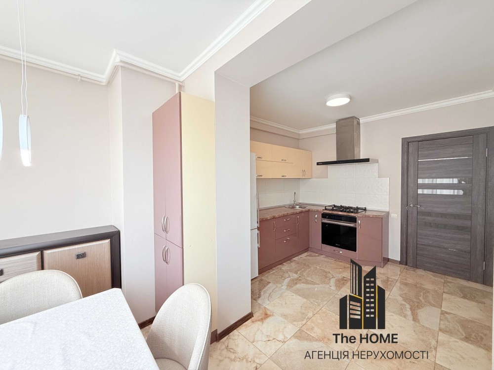 Кухня з лоджією та окремою обідньою зоною, окрема кімната з великим ліжком та розкладним диваном , санвузол з великою ванною, вмістка гардеробна для зберігання речей.