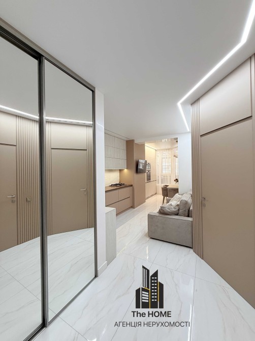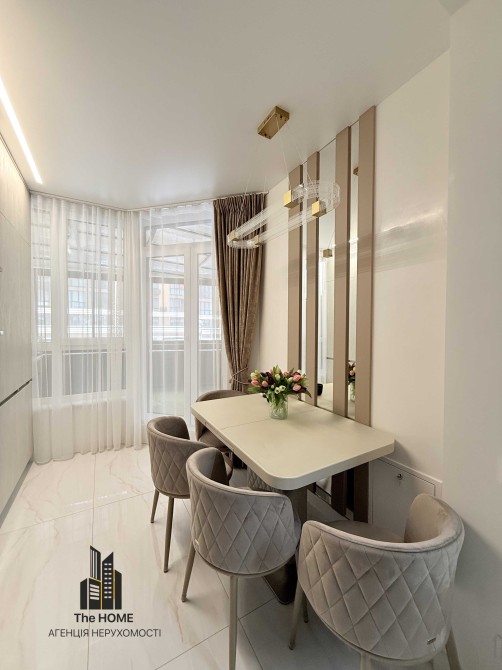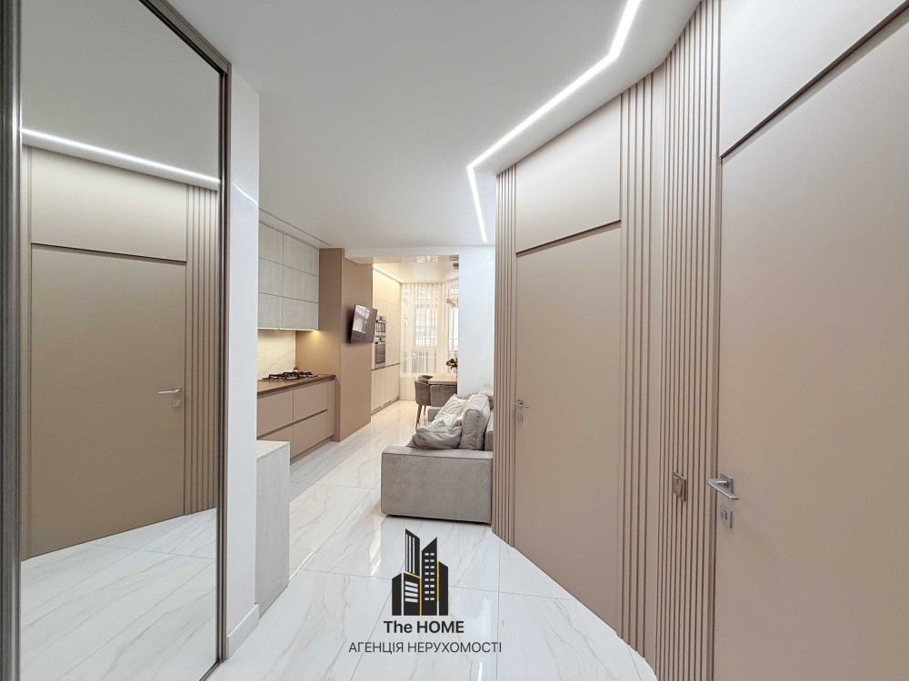 Квартира продумана до деталей: простора кухня-вітальня з преміальними меблями та сучасною вбудованою технікою, якісні матеріали оздоблення, стильне освітлення та витримана кольорова гама створюють відчуття комфорту й статусу. Панорамні вікна наповнюють простір світлом і мають вихід на велику криту терасу — ідеальне місце для відпочинку, ранкової кави або вечорів на свіжому повітрі.