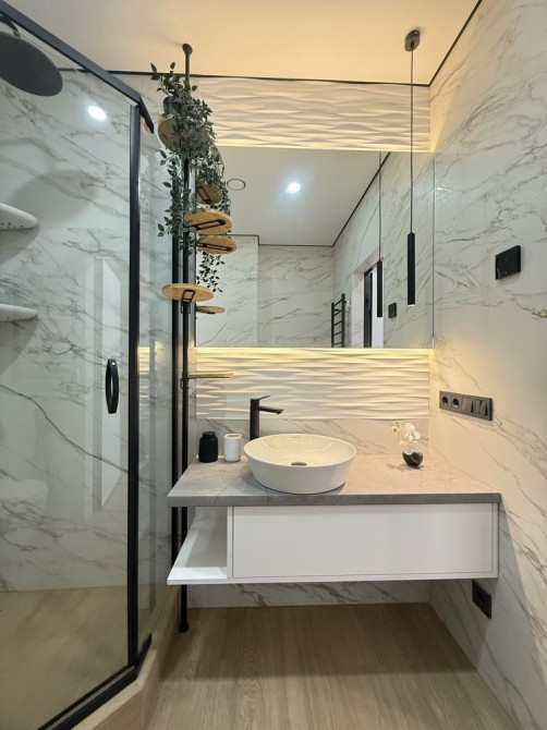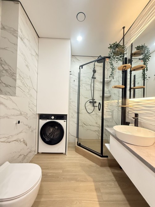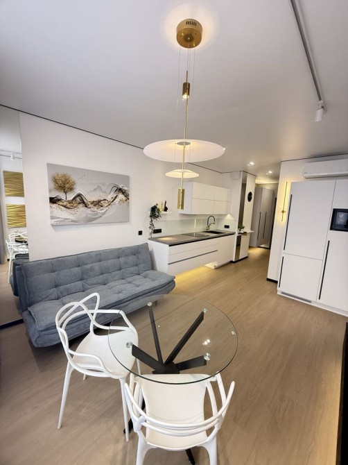 Квартира з дизайнерським ремонтом,укомплектована меблями та технікою: посудмийна машина, варильна поверхня, вбудований холодильник, мікрохвильова піч, пральна машина автомат з сушкою, телевізор, кондиціонер, бойлер.