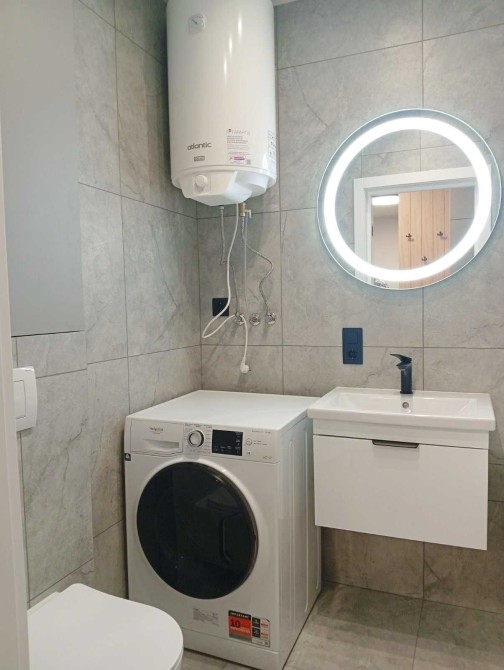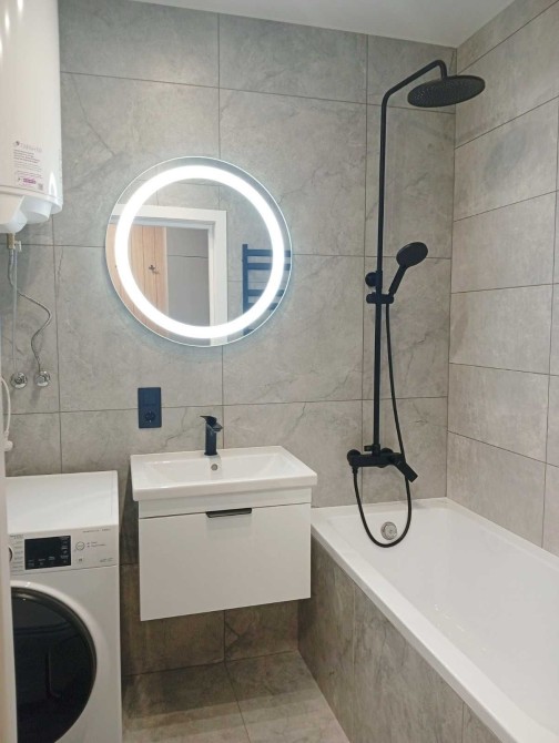 Санвузол : ванна, умивальник з тумбою, унітаз, бойлер, пральна машинка, електрична сушарка для рушників.