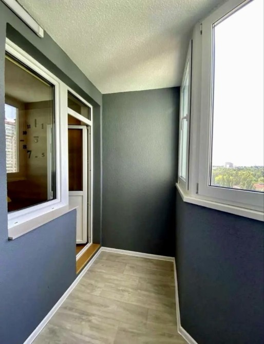 У квартирі є просторий балкон, на якому можна облаштувати робочу зону.