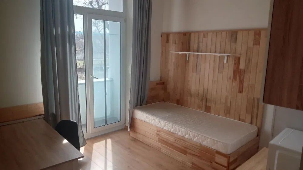Кімната світла, тепла, з великими вікнами та високими стелями. Зроблений свіжий ремонт. Має свій балкон.
