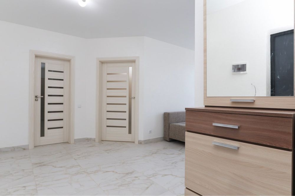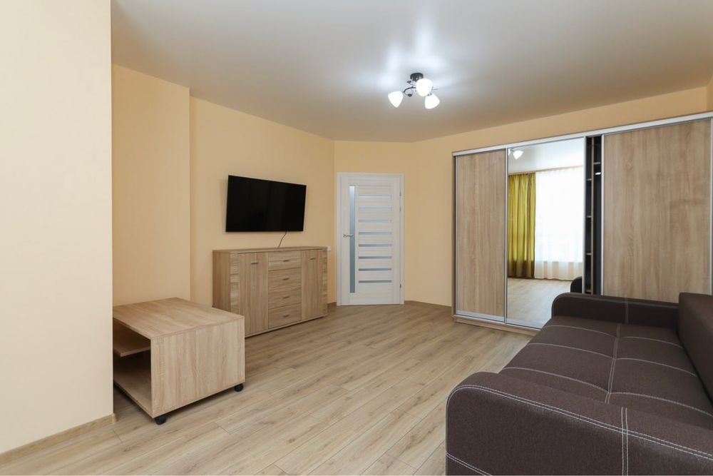 Здається 1-кімнатна квартира загальною площею 56 м2 у новобудові зі свіжим ремонтом, панорамними вікнами та стильним сучасним дизайном інтер’єру в центральному р-ні за вул. Коновальця.