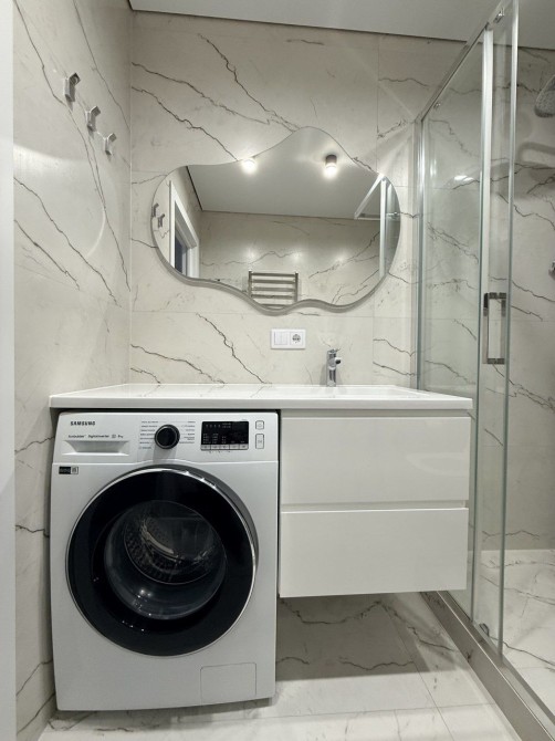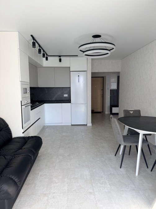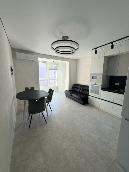 Доступна для оренди квартира в сучасному житловому комплексі в центрі міста. Облаштована всіма необхідними меблями та технікою, включно з кондиціонером та сушильною машинкою.