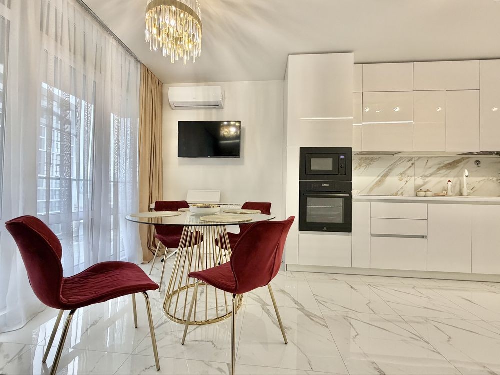Наявна вся побутова техніка: ПОСУДОМИЙНА машина, КОНДИЦІОНЕР, SMART-TV, пральна машина, індукційна плита, духова шафа, мікрохвильова, холодильник