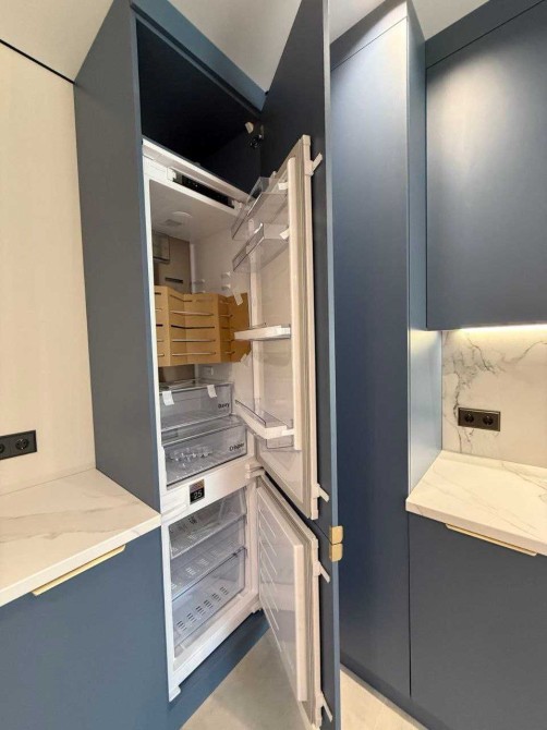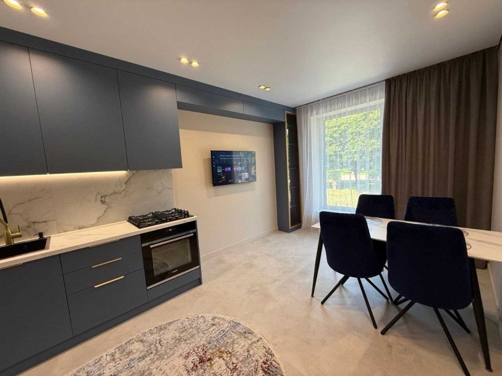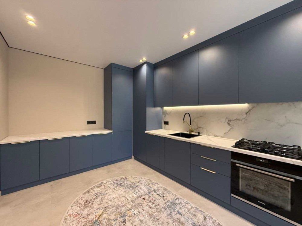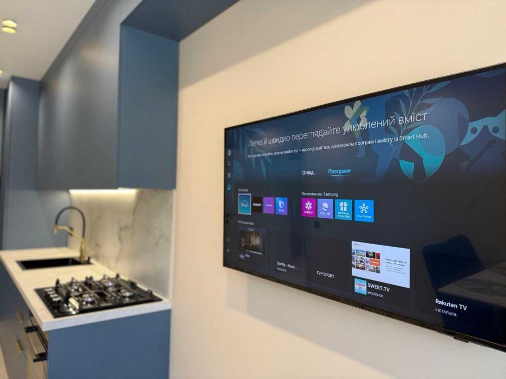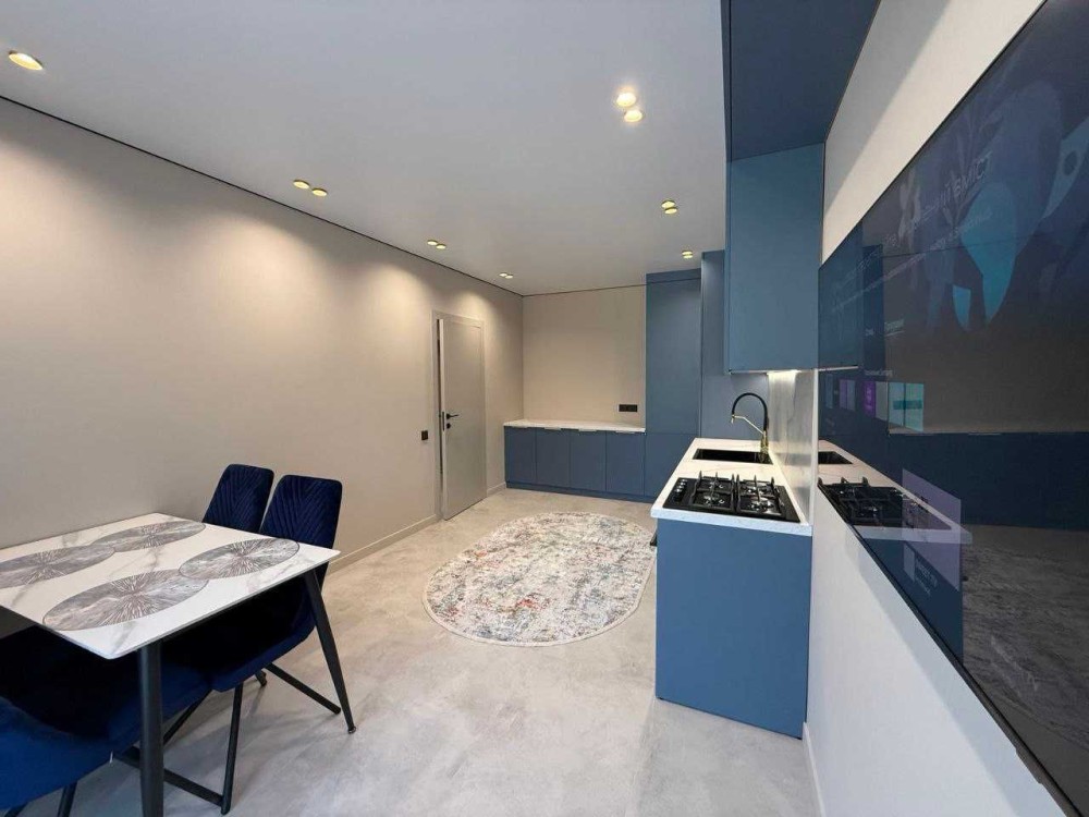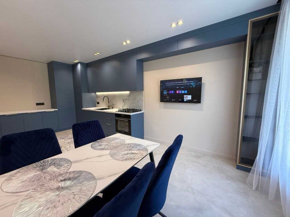 - сучасні меблі ( вмонтована кухня із вбудованою побутовою технікою( вбудований холодильник, газова плита, духова шафа, посудомийна машина, витяжка, смарт ТВ)