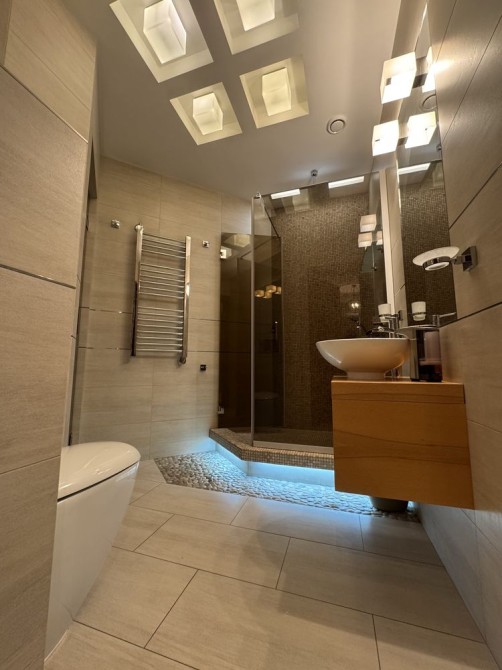 Оренда стильної 2 кімнатної квартири у якій виконано якісний дизайнерський ремонт. Квартира має окрему спальню та кухню студіо. Велика гардеробна кімната . Один санвузол обладнаний душовою та має окрему зону для прання.