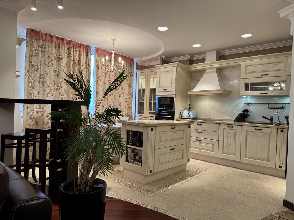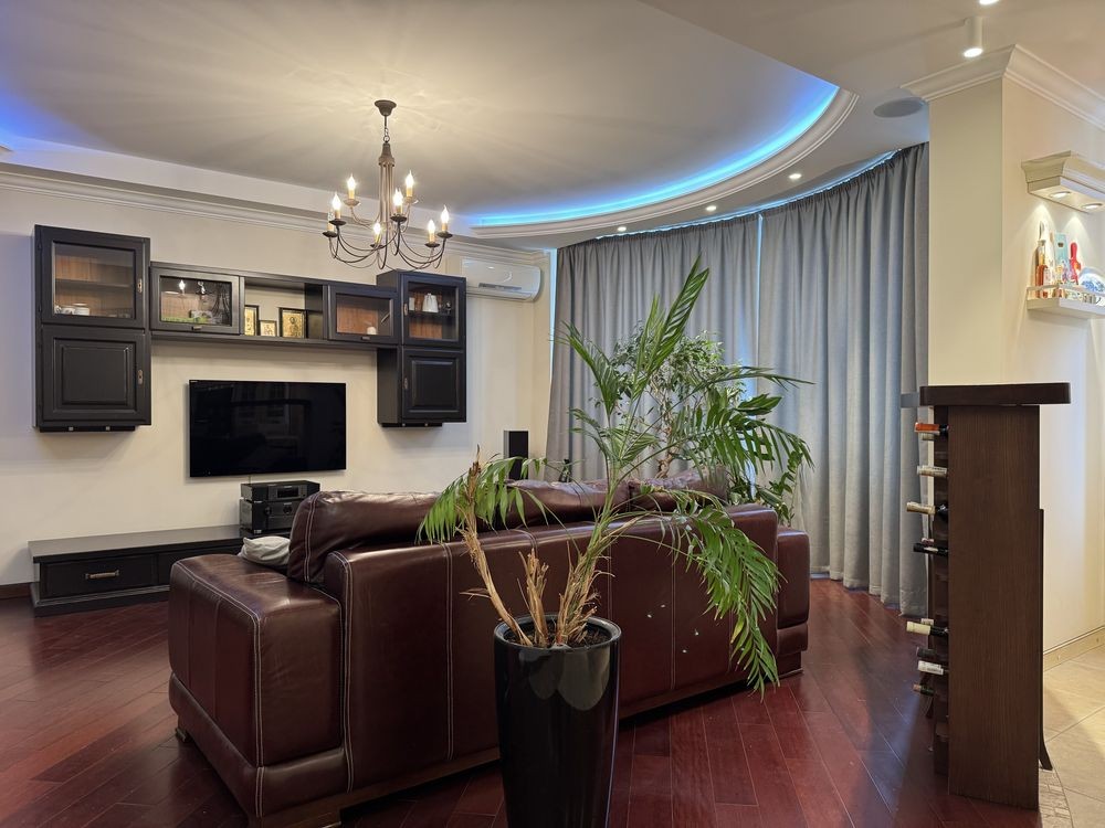 Квартира 4-х кімнатна , здається частина квартири : простора кухня вітальня , окрема спальня , санвузол , гардеробна ( дві кімнати зачинені ) .