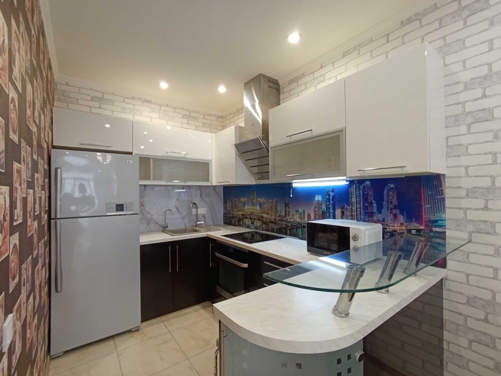 В квартирі виконано косметичний ремонт, обладнана сучасними меблями та технікою для комфортного проживання, а саме : кондиціонер, пральна машина, бойлер, варильна поверхня, духова шафа, холодильник