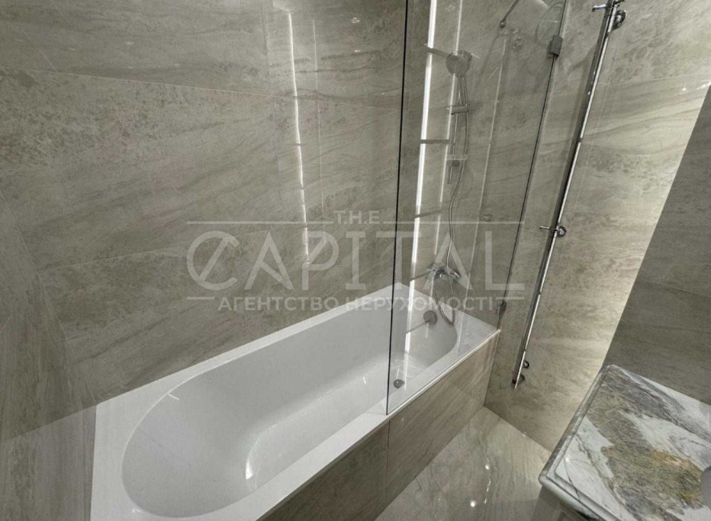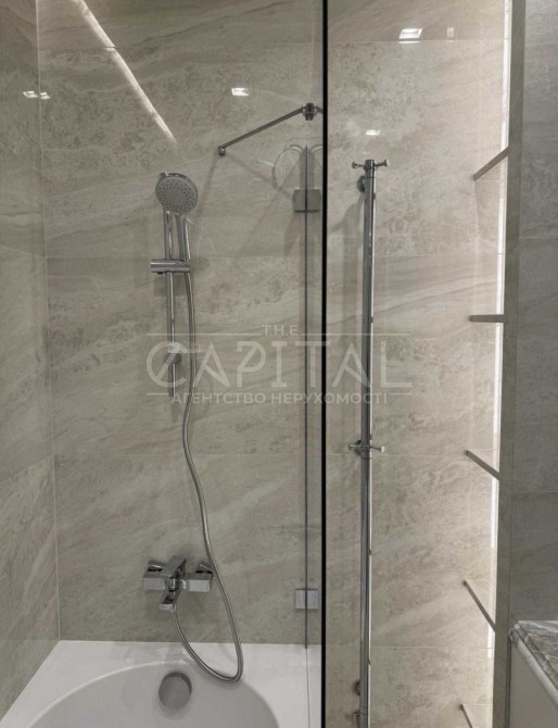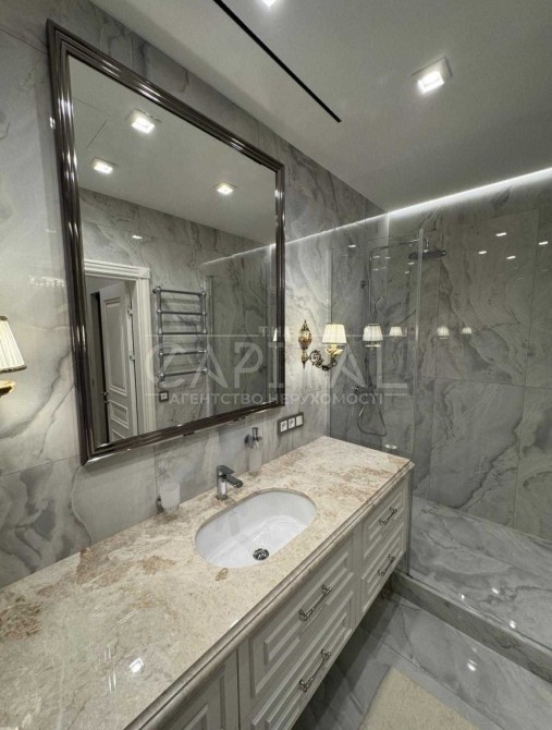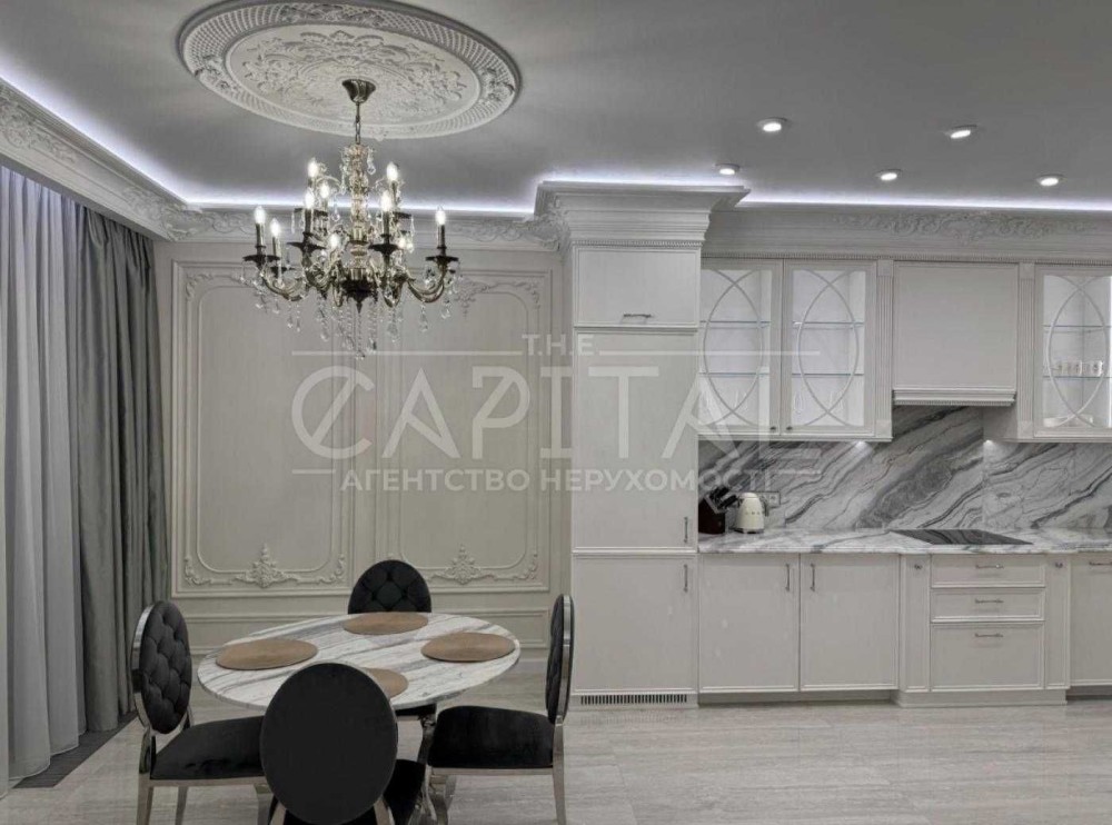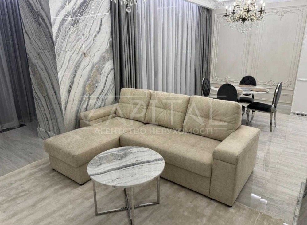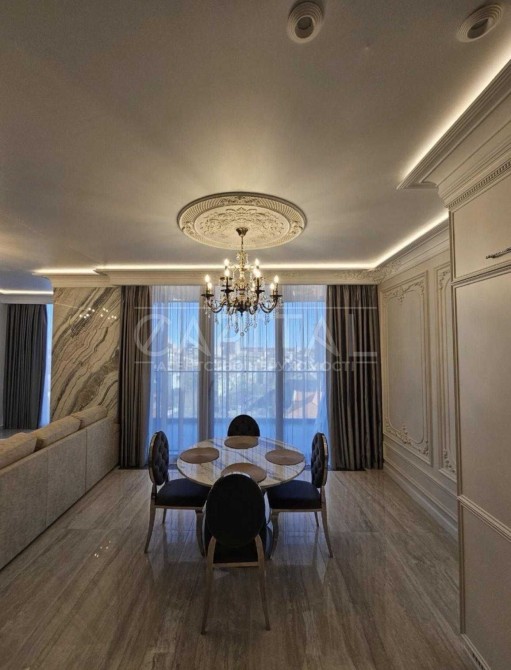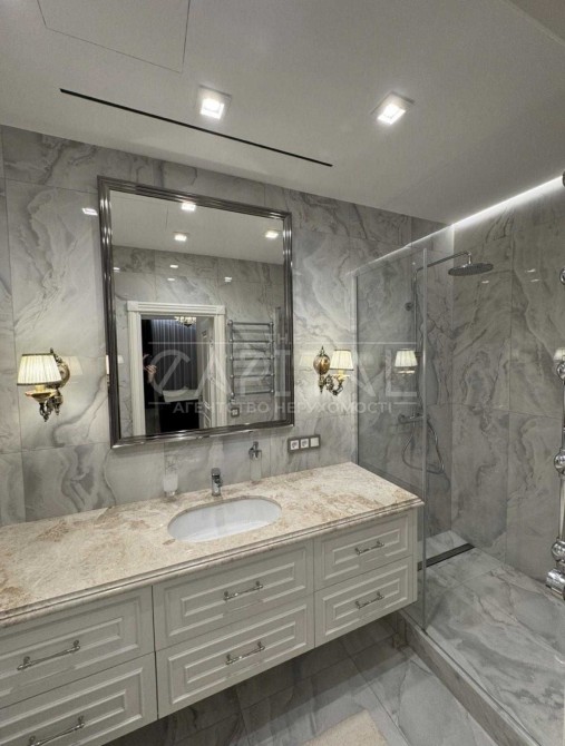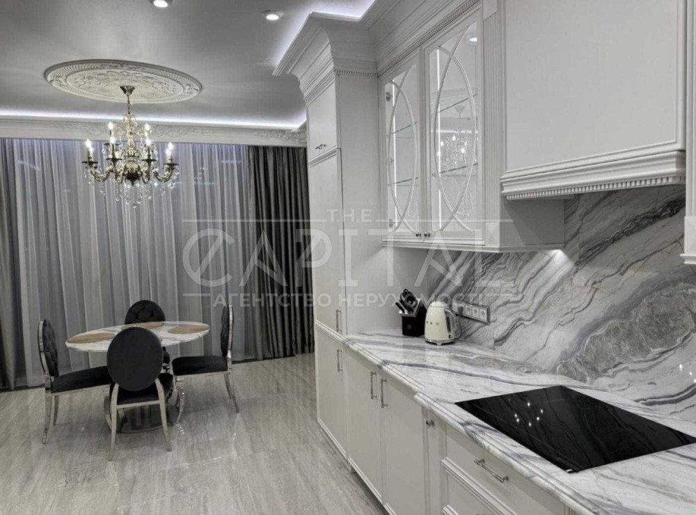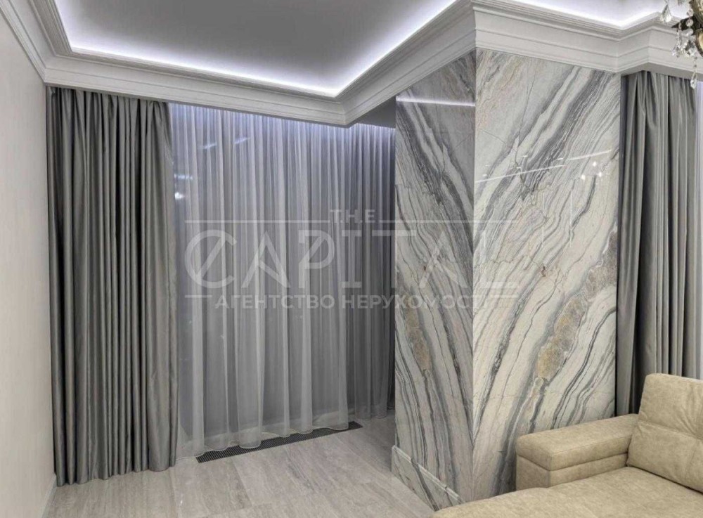 Квартира дуже високого рівня, сантехніка Villeroy boch, на підлозі Італійський керамограніт, стільниці та колони з натурального мармуру, техніка преміум класу, штори з атласної тканини.