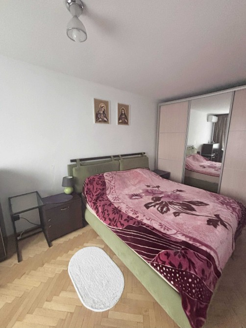 Двоспальне ліжко, великий диван.Шафи, комірки.