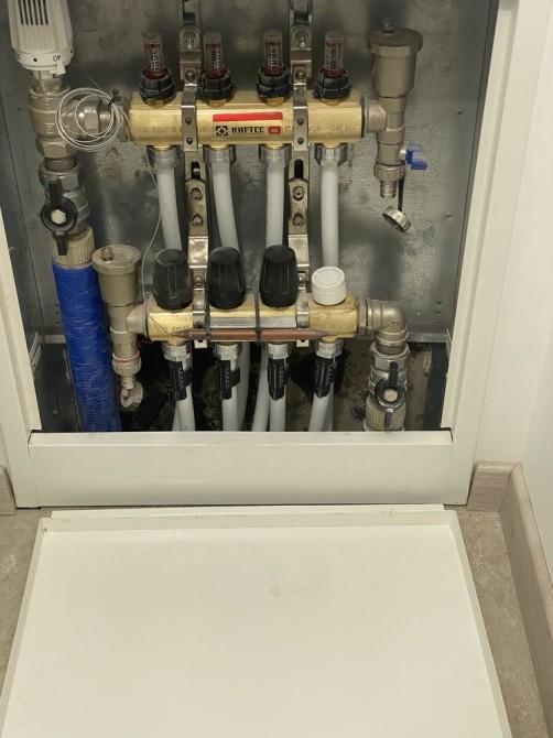 Всюди де плитка а це санвузол коридор та кухня підігрів підлоги.